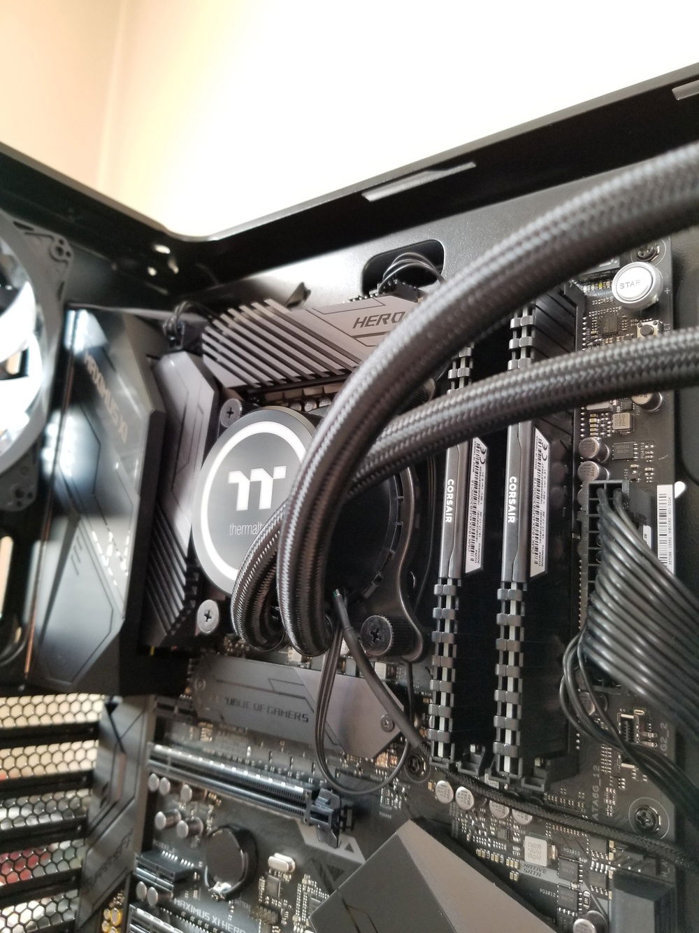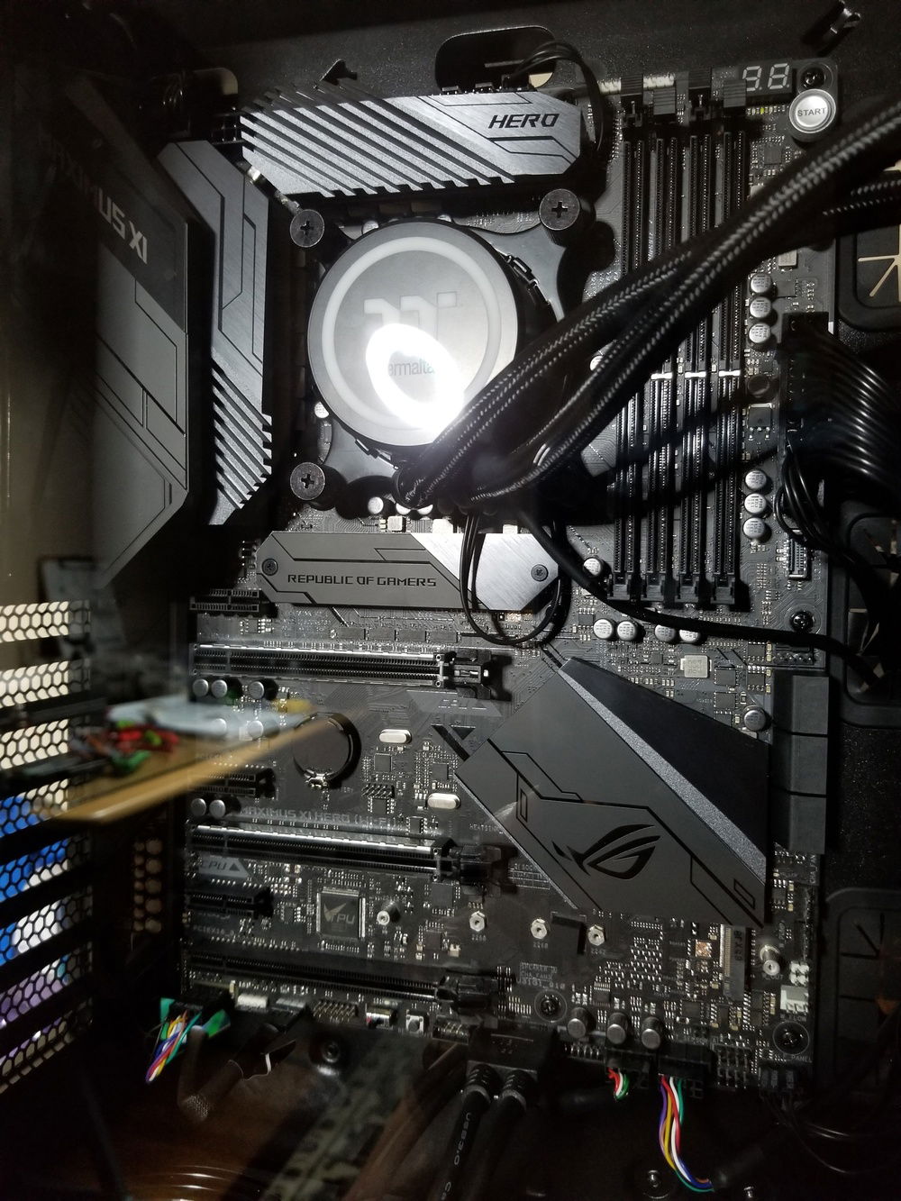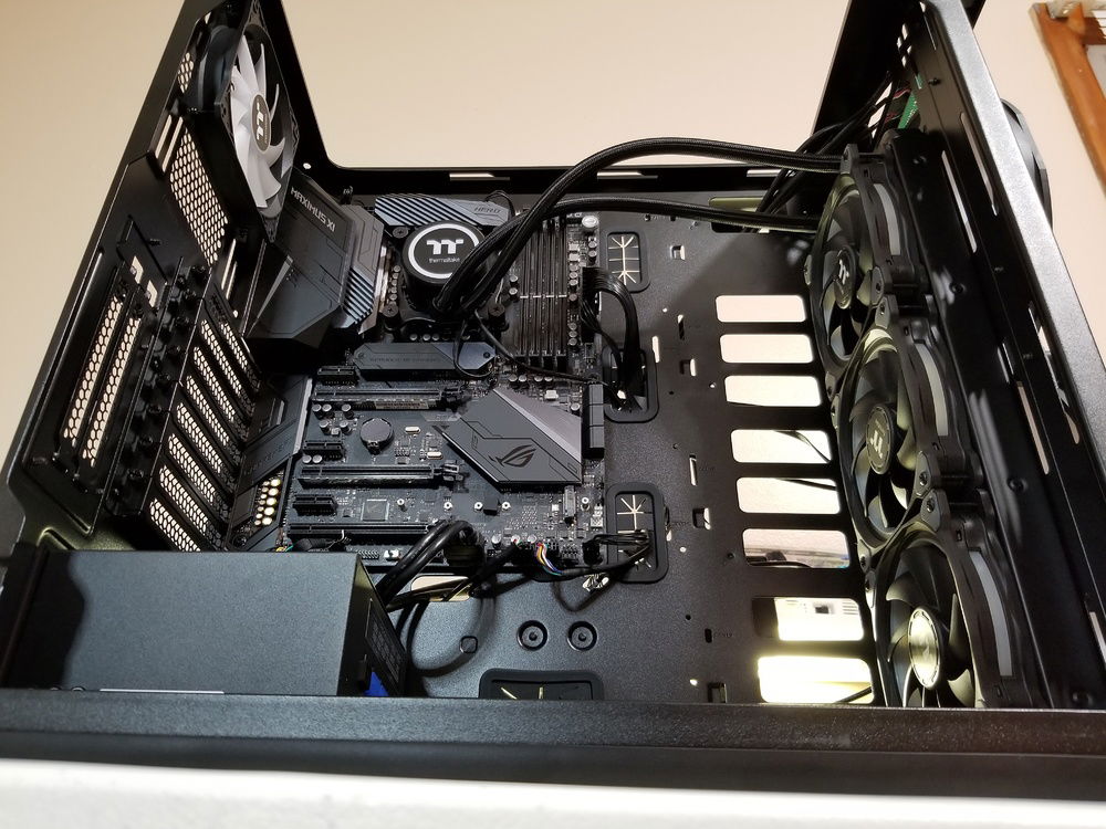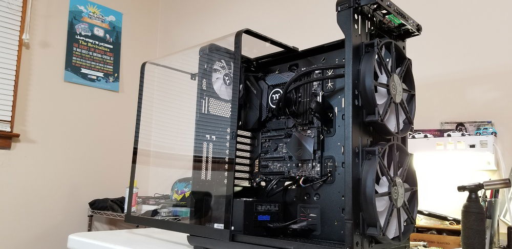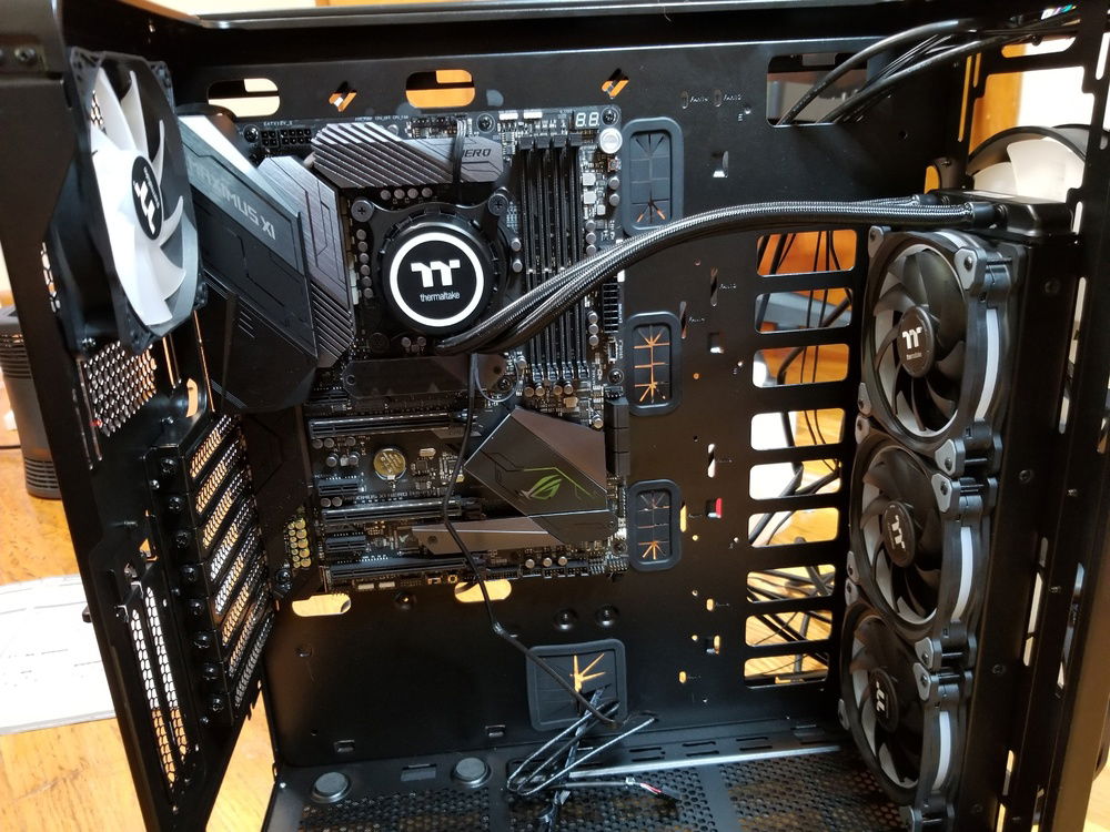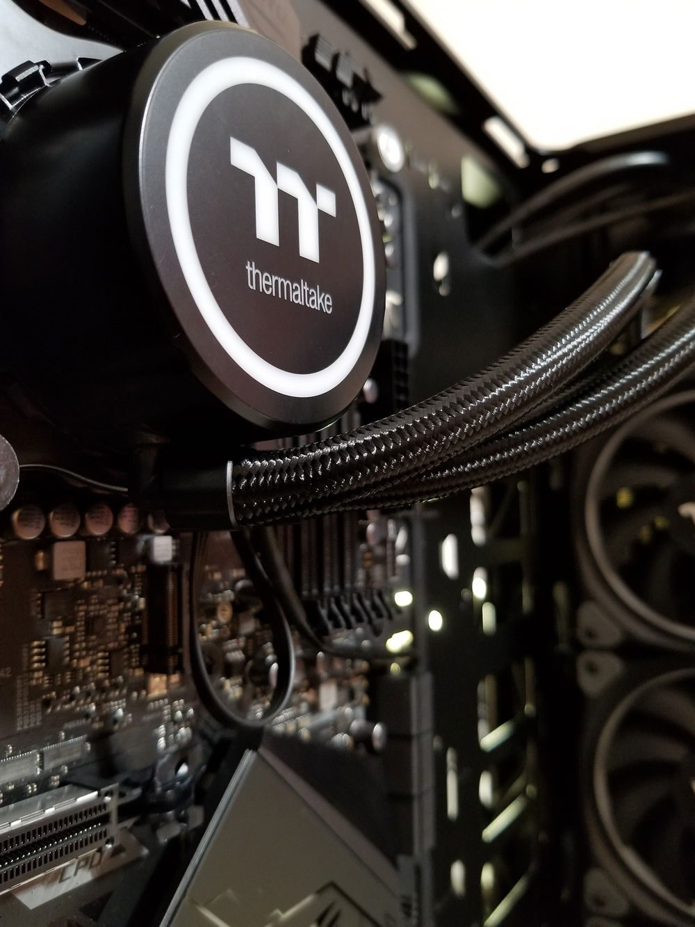 Card is here, used stock rear exhaust fan for a push pull setup on the hybrid cooler