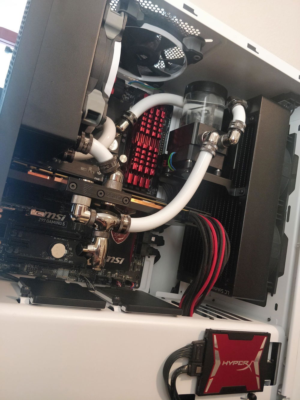 i7-4790K @ 4.8Ghz Zotac GTX 980ti AMP! Edition 16gb 4X4 G.Skill Ripjaws X 2133Mhz MSI Z97 gaming 5 Kingston Savage 120gb boot WD Blue 500gb X2 in Raid 0 EVGA SuperNova 850G2 NZXT S340 Elite