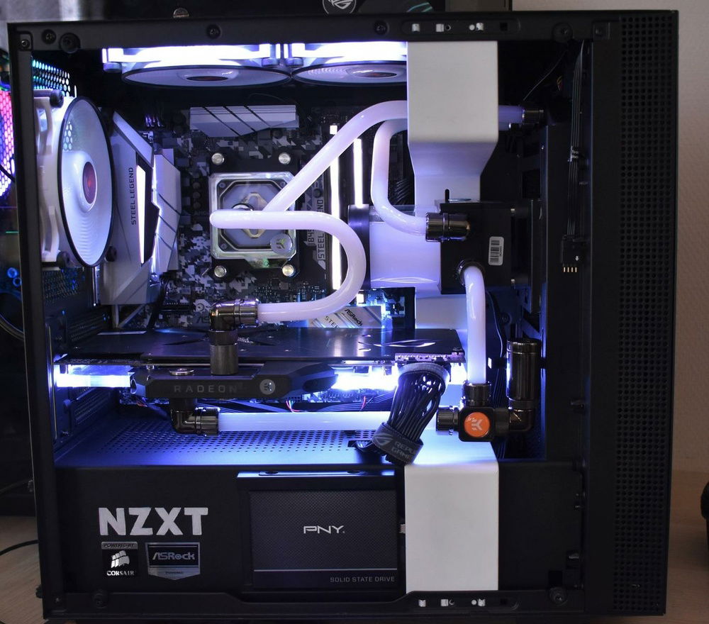Everything on a beautifull white/back/nickel motherboard (Asrock b450m steellegend), For a "cheap" MB you have: 2 m2 slot, argb header, rgb header, 4 ram slot up to 3200 mhz, 4 fan connector + pump....
