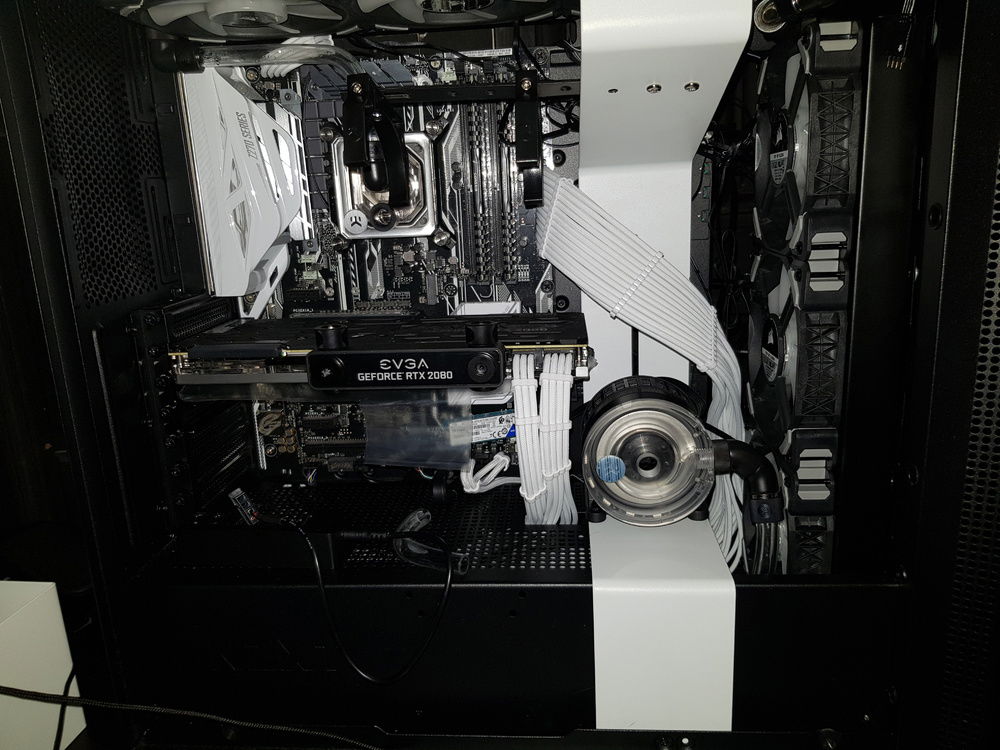 A day later i had an issue with a leaky lid on the reservoir, somehow it was leaking a drop every odd hours , two of them fell into the PSU which somehow i had forgotten to mount it fan down. Had chose an oversized 1000W PSU so that the fan would basicly never turn on.