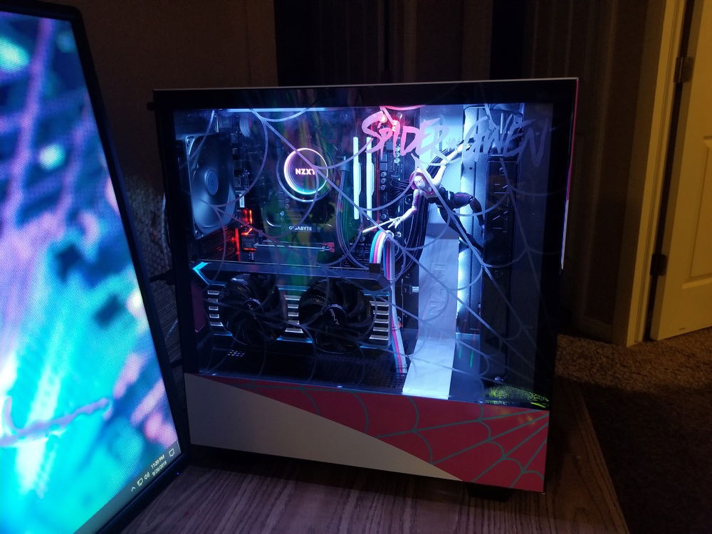 I recently built myself a new PC and decided to donate my old parts to my sister. She is huge into comic books and Spider-Gwen is her favorite superhero. All parts except the hard drive and case are from my old rig. I did update the AIO cooler from an old (6+ years) corsair 120mm to the kraken x52 (240mm) as well.