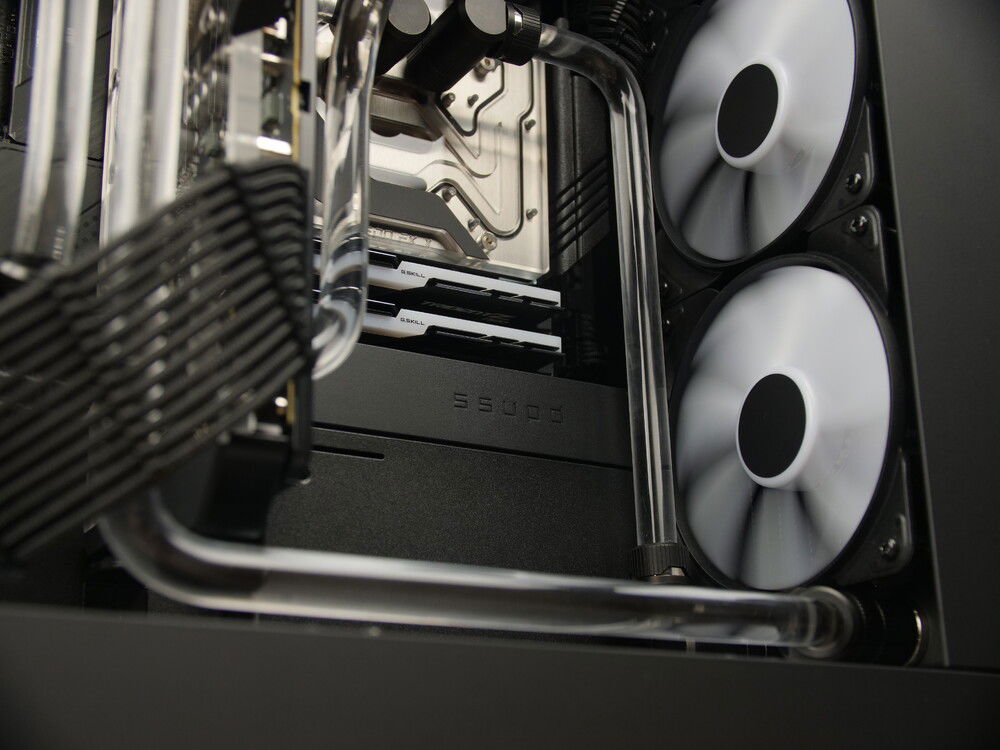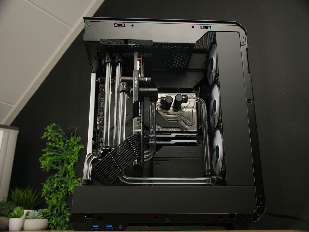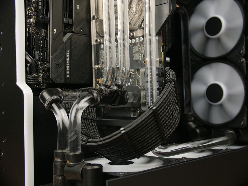 Unique feature: custom loop running through the GPU Block and PCB of the RTX3080 FTW3 card.