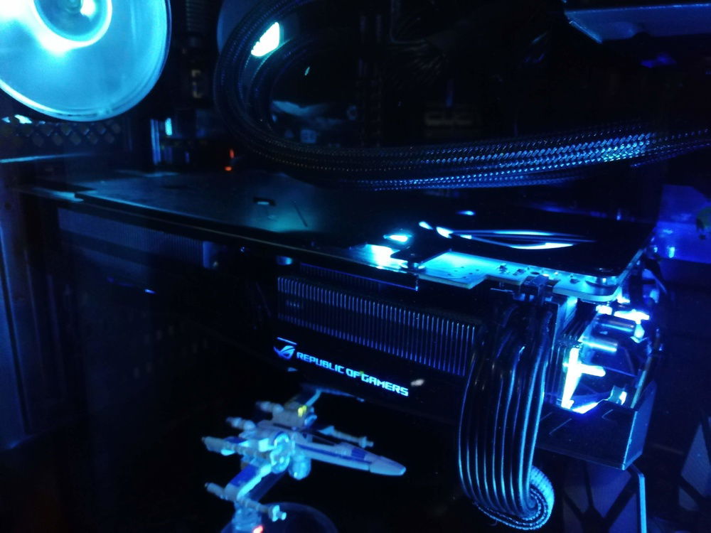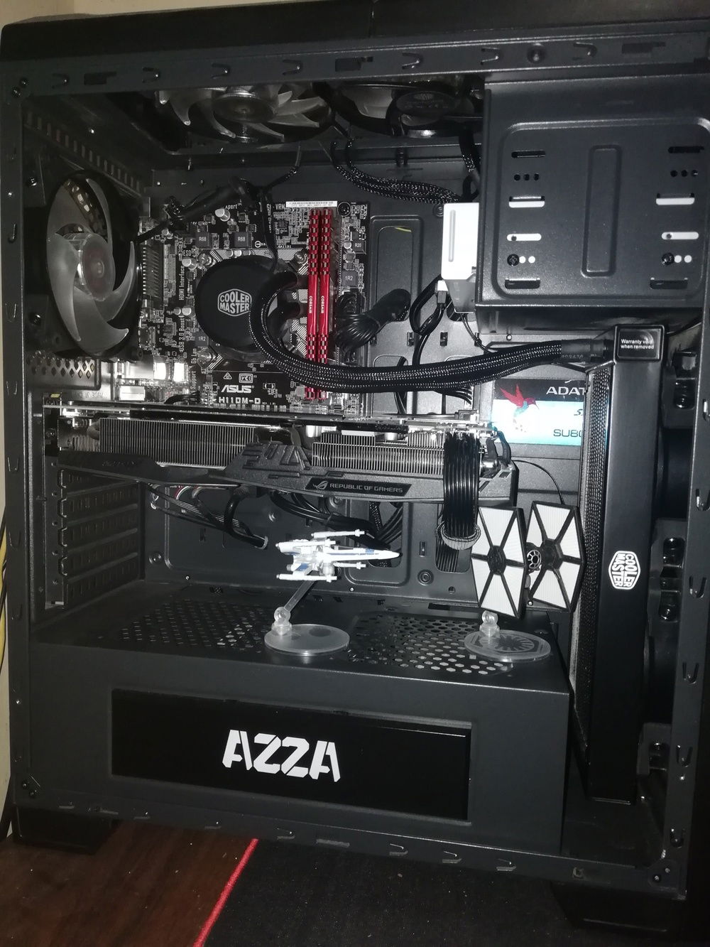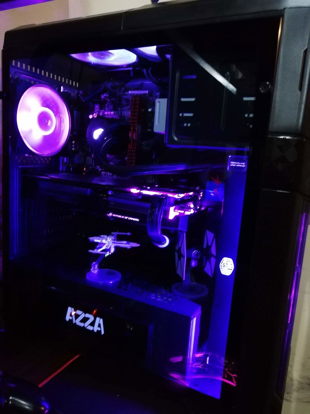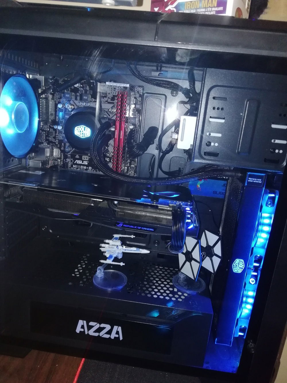This is my current gaming PC. Started off as a regular PC, but I've been adding and changing components here and there. I added the Star Wars ships because... well... everyone should love Star Wars. I prefer the X-wing but the Tie Fighter also works as a GPU holder. It has an i7 6700, RX 580 8GB, 16 GB of RAM and even RGB lightning for those extra FPS. Some components are entry level to stay on budget, but it has all that is needed for good gaming without breaking the bank. The PSU is a Seasonic PRIME Utra 1000 Titanium that I got at a good price to replace my old 600B. I know it is a lot more than I need but I guess I won't ever have to worry about the PSU anymore.
