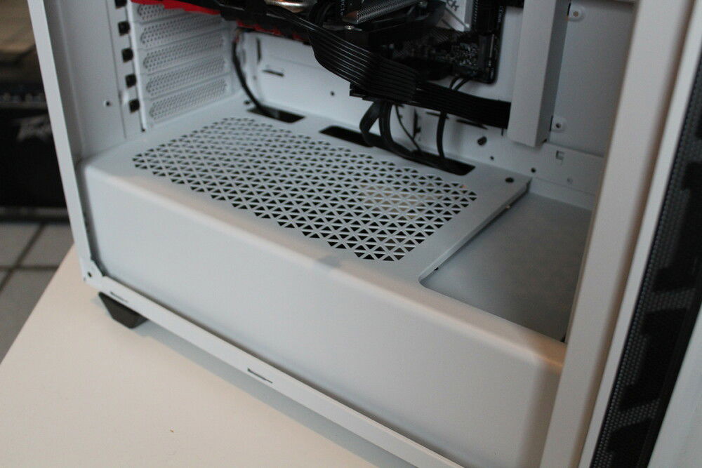 This case has an alternate top cover, which presumably stops more sound (it has a sound isolation pad) but allows dust to enter more than this dust cover.