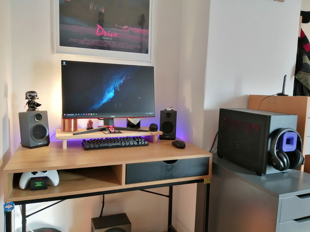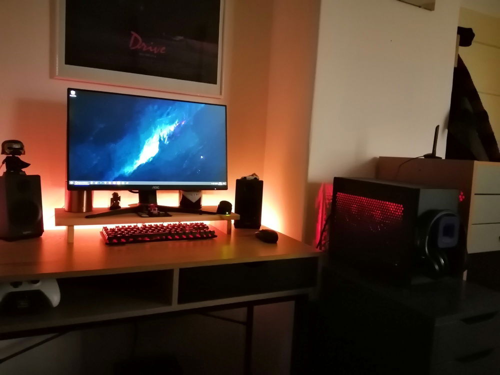 The keyboard and mouse were originally Cooler Master Devastator III, before upgrading them to HyperX Alloy FPS TKL with cherry red and a Logitech G305 mouse.