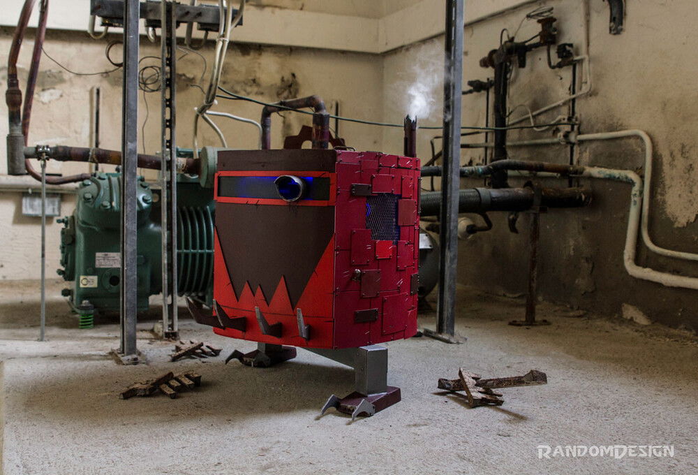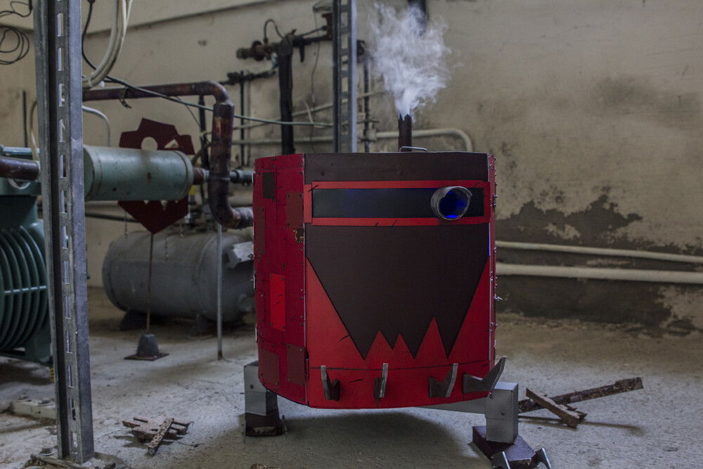 The Steam Machine was built for the Hardwareluxx case mod contest 2014 and won in the public voting. The design is related to the Warhammer 40k universe and matches the Space Orc look. It contains a dry-ice reservoir for producing steam that comes out of the funnel