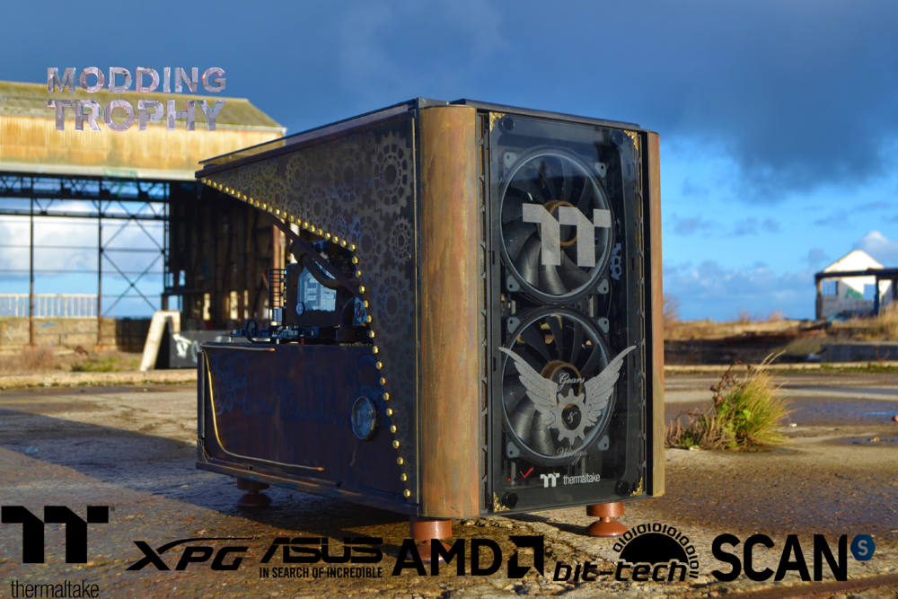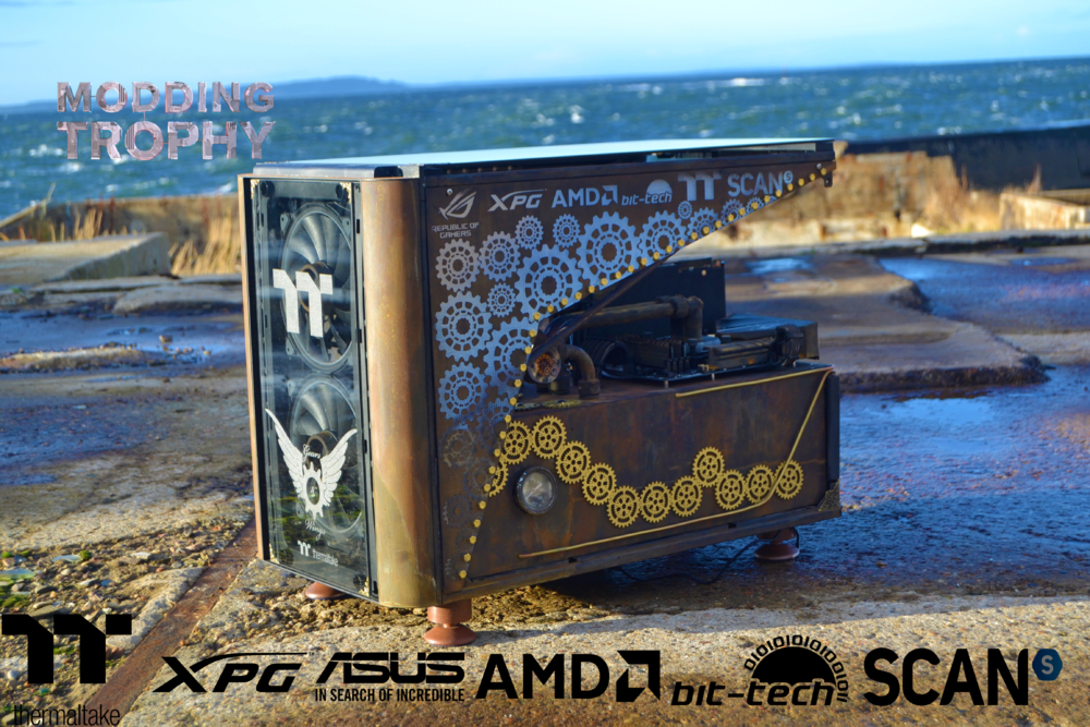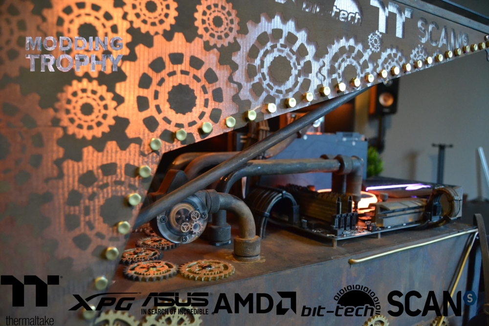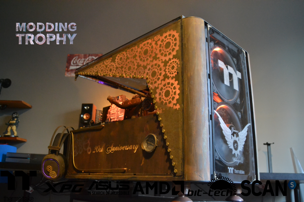 Good old fashioned original steampunk, with electric motors and ofc some steam :p lots of antique brass,leather and over 200 solid steel bolts! Let's not even start with the glass, acrylics and custom made metal badges and logos.