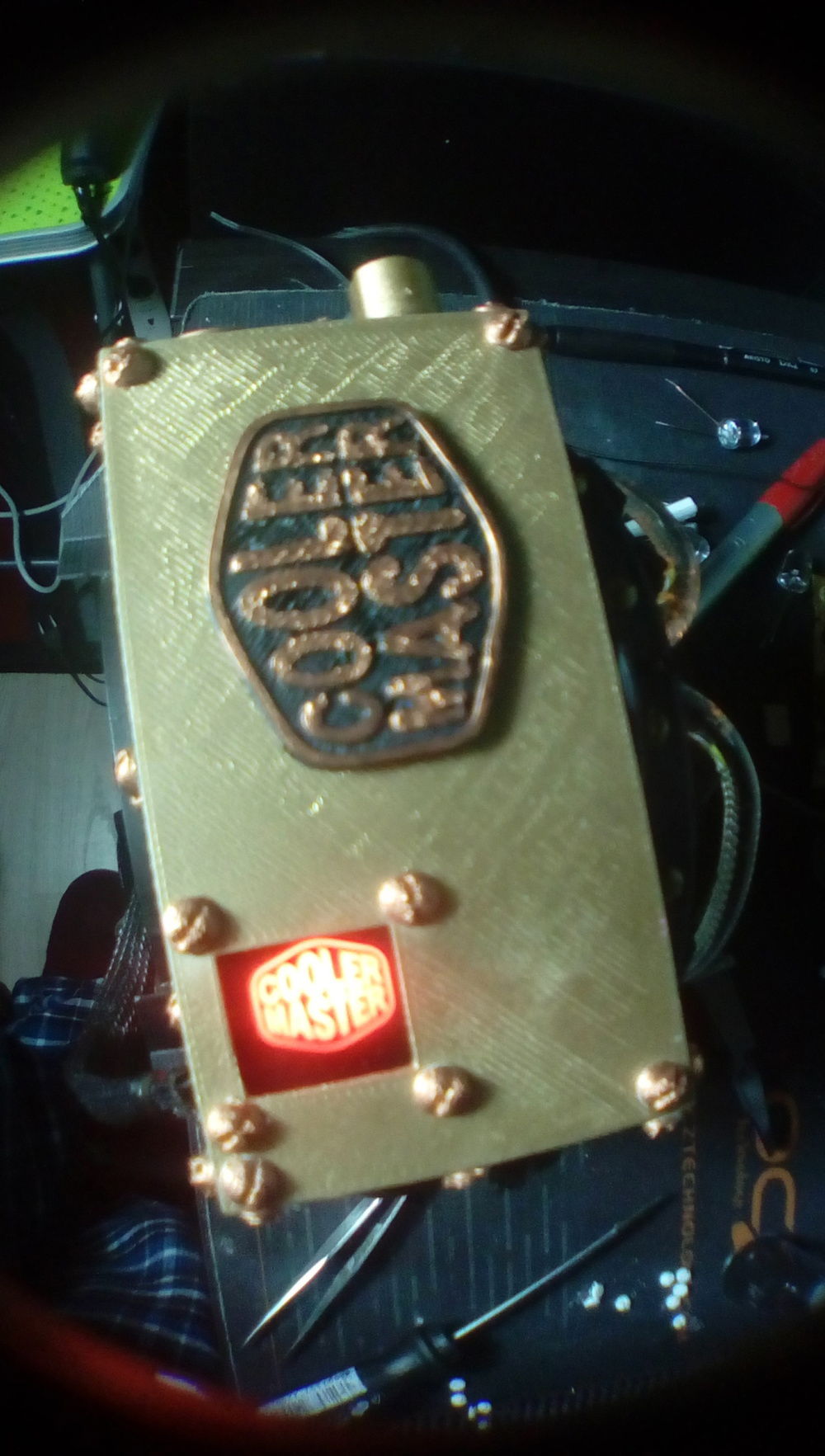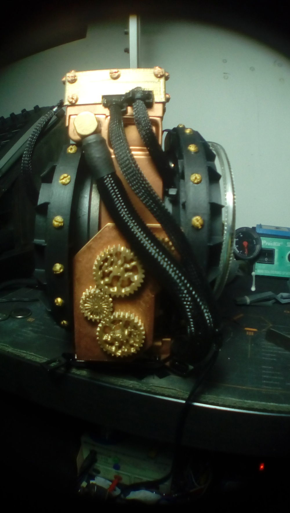 The initial idea was to use 3D printing in the project and what theme to use to not modify much the original concept of the product hence came the idea of using as a reference steampunk culture and create a design that gave that aspect. All the pieces were designed and printed in 3D on a general painting and alteration of the lighting.