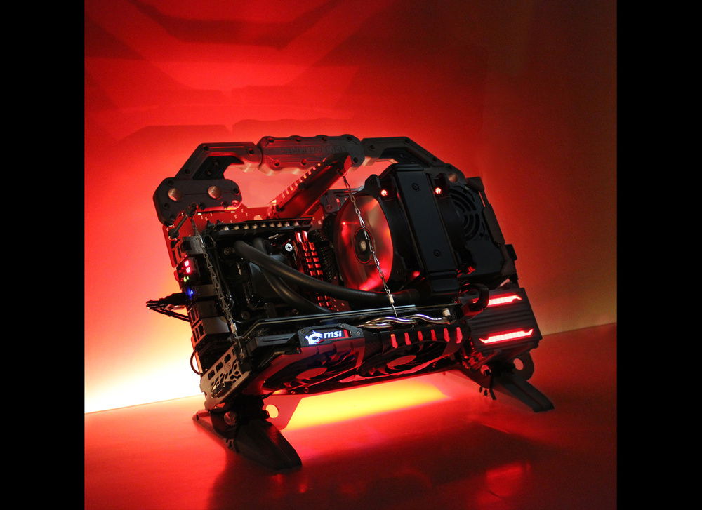 This build has the following 3D printed items: Stands, Carry Handle, GPU support with RGB, Rear RGB spines, 120mm AIO mount, SFX PS mount, SSD Cover & 3X 2.5" drive mount.