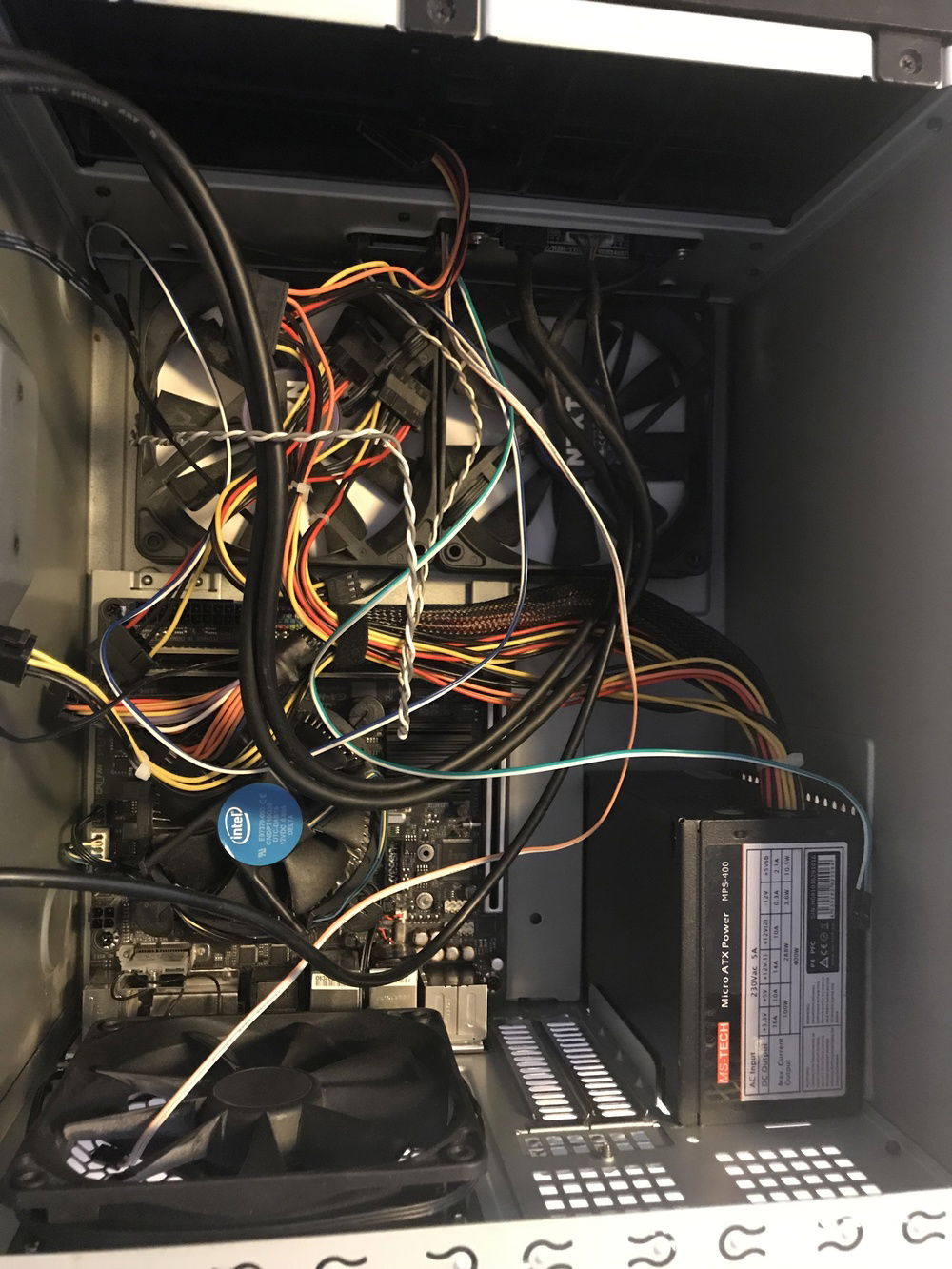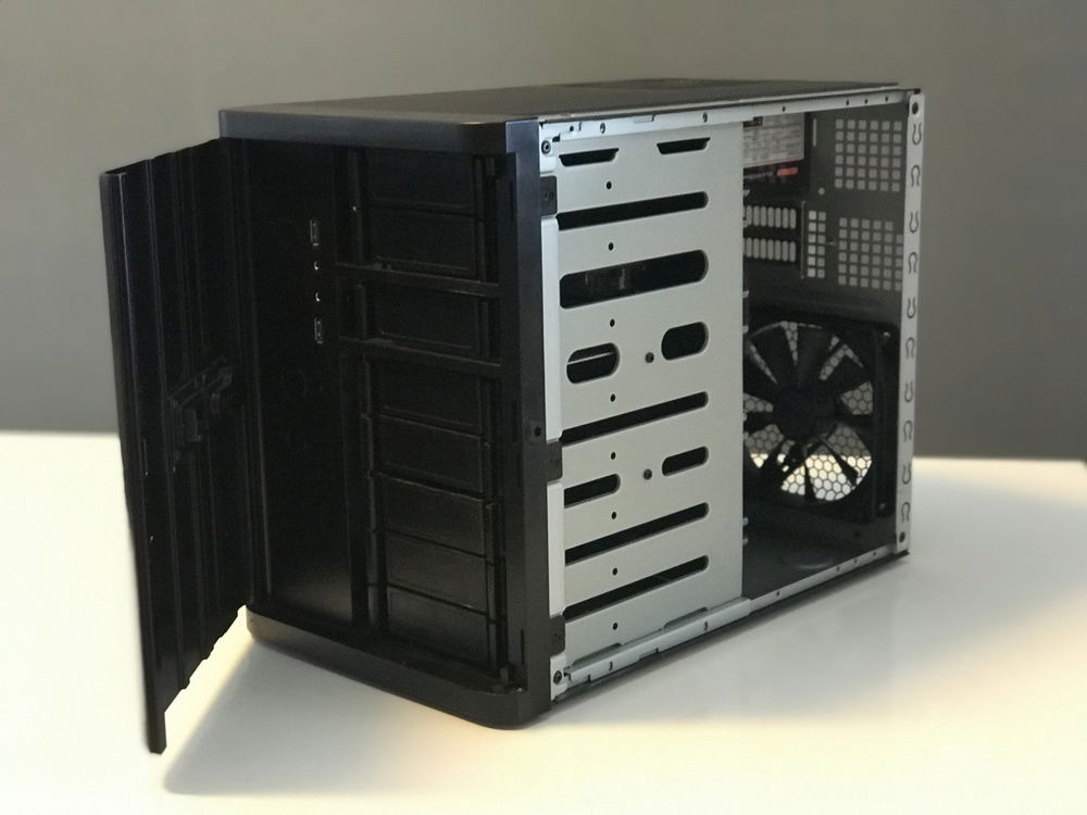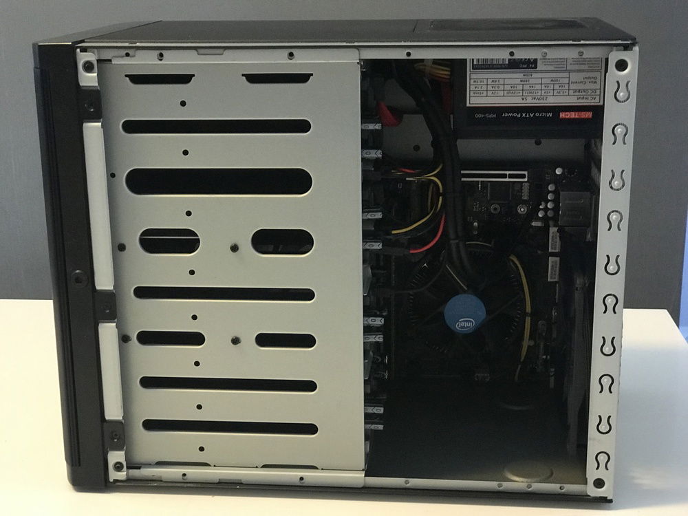 a Micro-ATX Nas Build, this case can hold 8 3.5"drives and is a build with the focus on cable managment and airflow. This task may sound easy, however there is no side panel to hide your cables like any normal case. I fully redone this build to improve the airflow and create a neat looking build. I'm not going over the top with a sleeved cable build as there is no side panel. however i still made is as neat as possible in a very tiny case. It runs on a Intel celeron G3930 which has enough power for a NAS