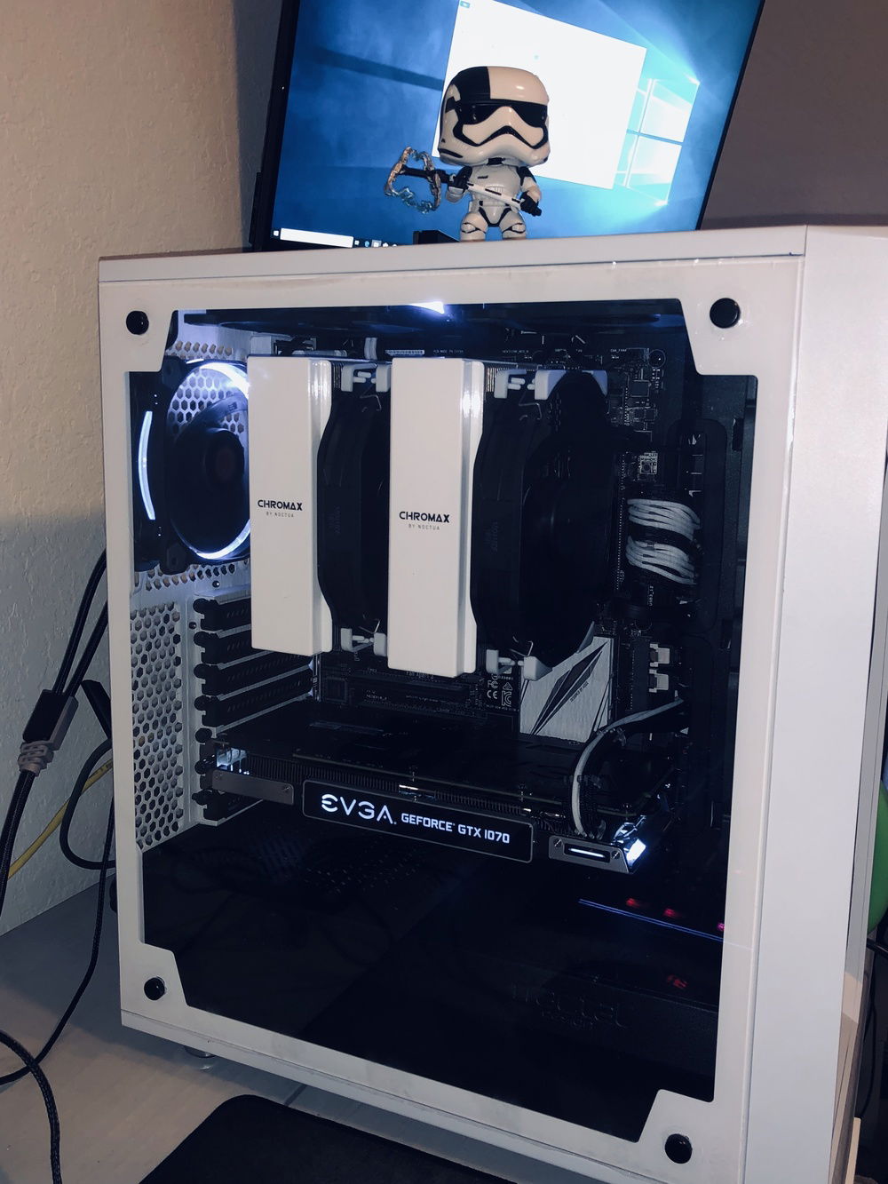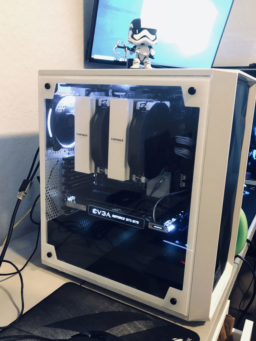 Build I did for my brother with parts from my rig after upgrading and a couple new parts. This first gaming pc.