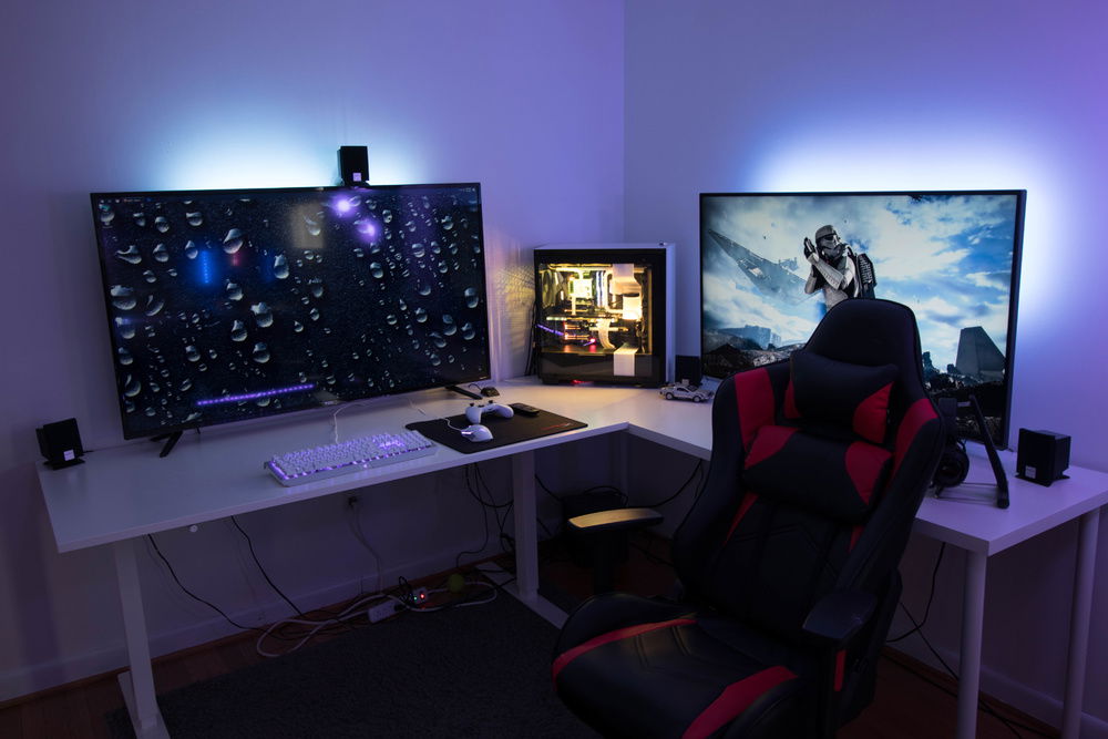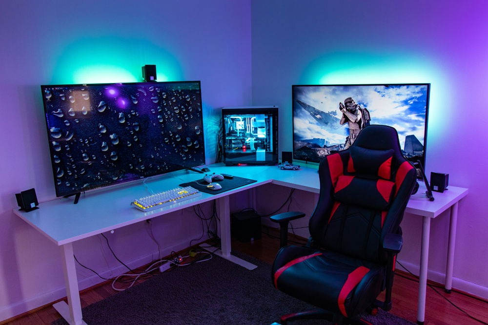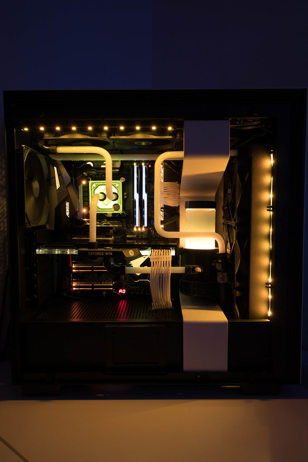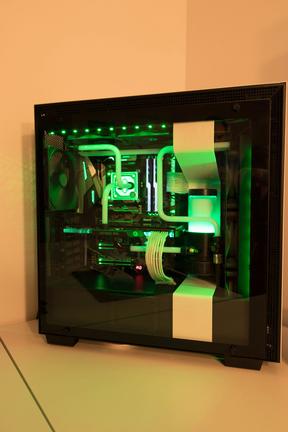 Been working on this for quite a while. 8086k 5.1ghz at 1.3 volts. Temps are 27c on gpu and cpu idle. GPU is 50c after gaming for about 35 min and settles in at 2085mhz. Cpu will hit 71c under high avx but only 55c gaming. Went from NZXT AIO to custom loop. Been using NZXT for about 10 years now and love their products. Pictured is the rig and my setup. Yes, I use 55in 4k TVs for my monitors but I still get 60hz and these do not have much lag. I would rather have the screen space and thats ok with me. Speakers are creative labs 5.1 that were purchased in 2003 and still rock it for my setup. Turtle beach 7.1 headset.