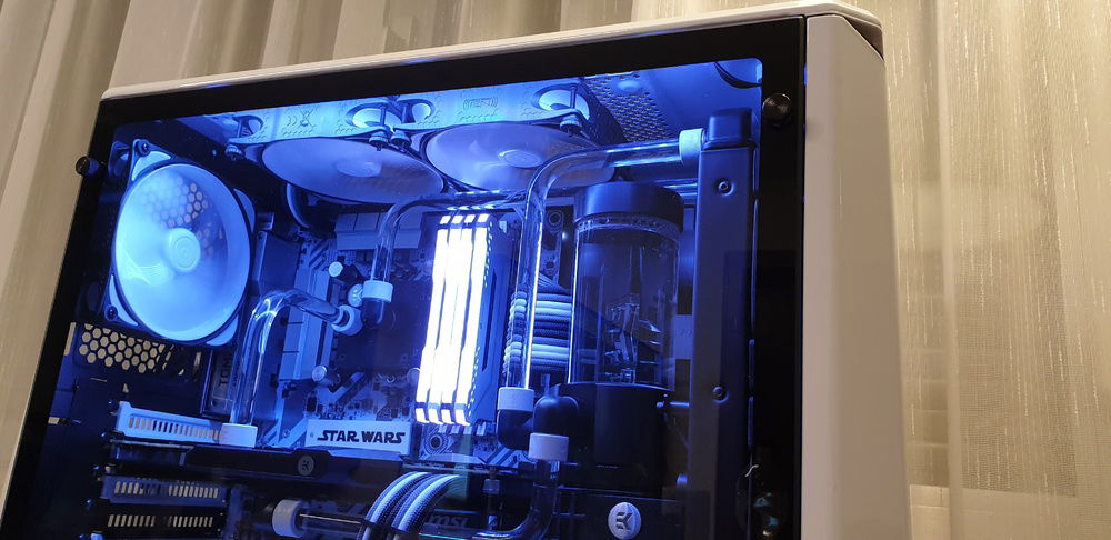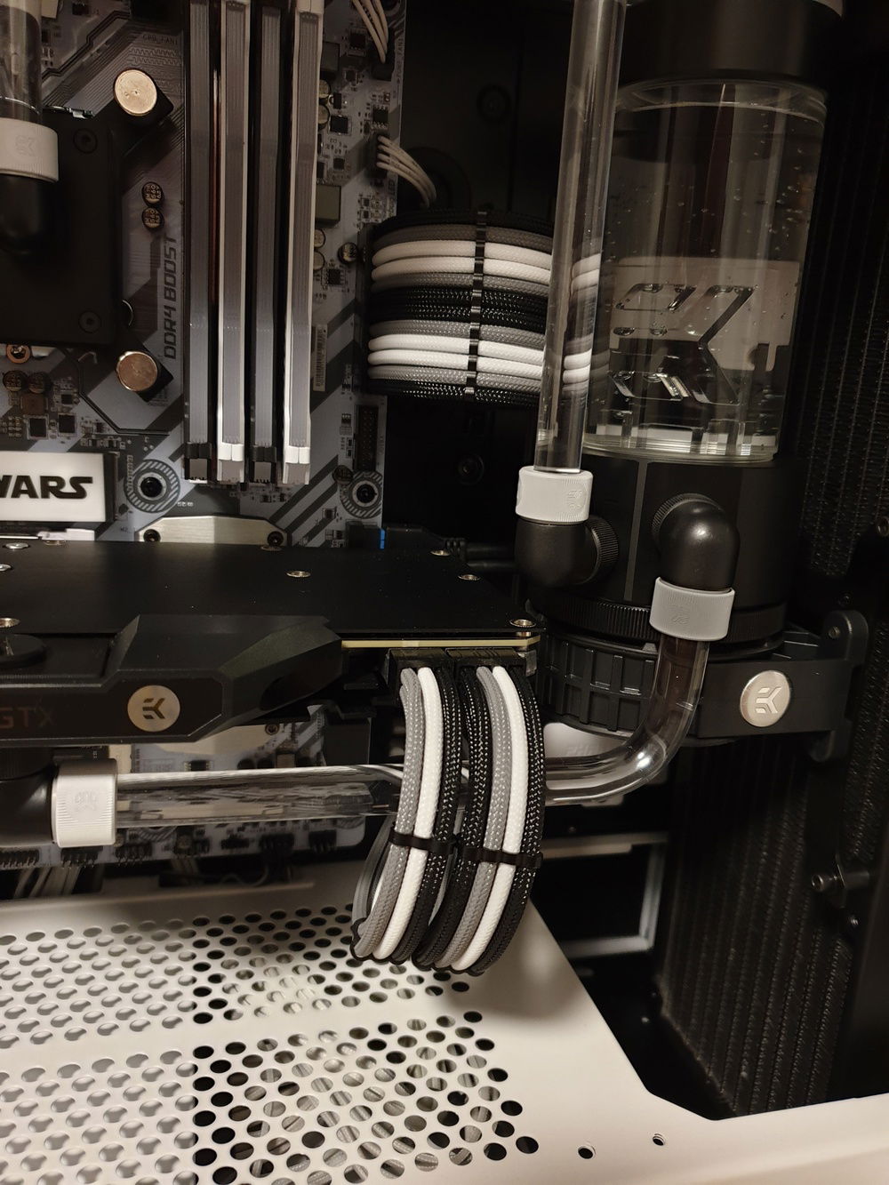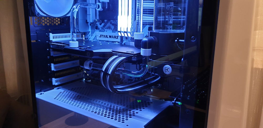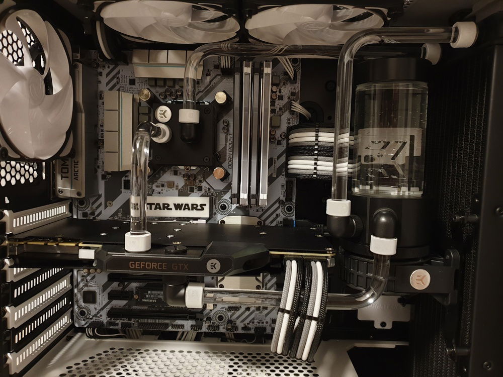 So this is my First Watercooled build and also my first Hardline Tubing. I tried to keep it as clean as possible with the White/Black Stromtrooper look with a little bit of Gray accents.
