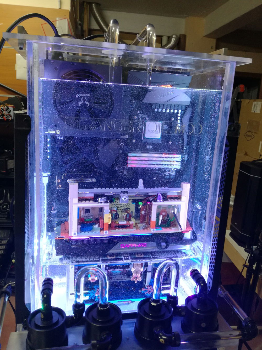 The project comes to life with the desire to create something very special that goes beyond the custom loop. In everything there is the technical and artistic side. The artistic one is given by using the video card in addition to its features but also the main theme of the television series, Stranger Things. From the combination of the series name and from the fact that the computer will be cooled with mineral oil that gives life to the Stranger Oil Mod.