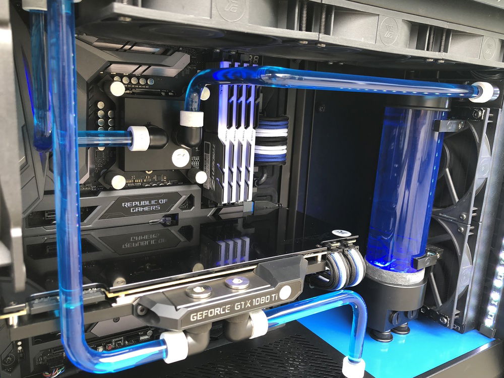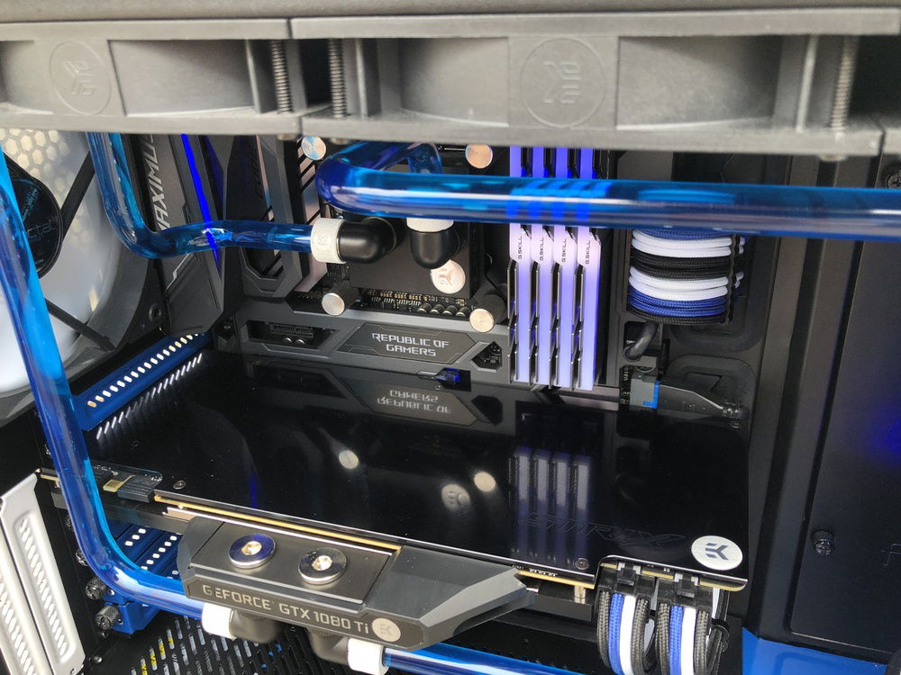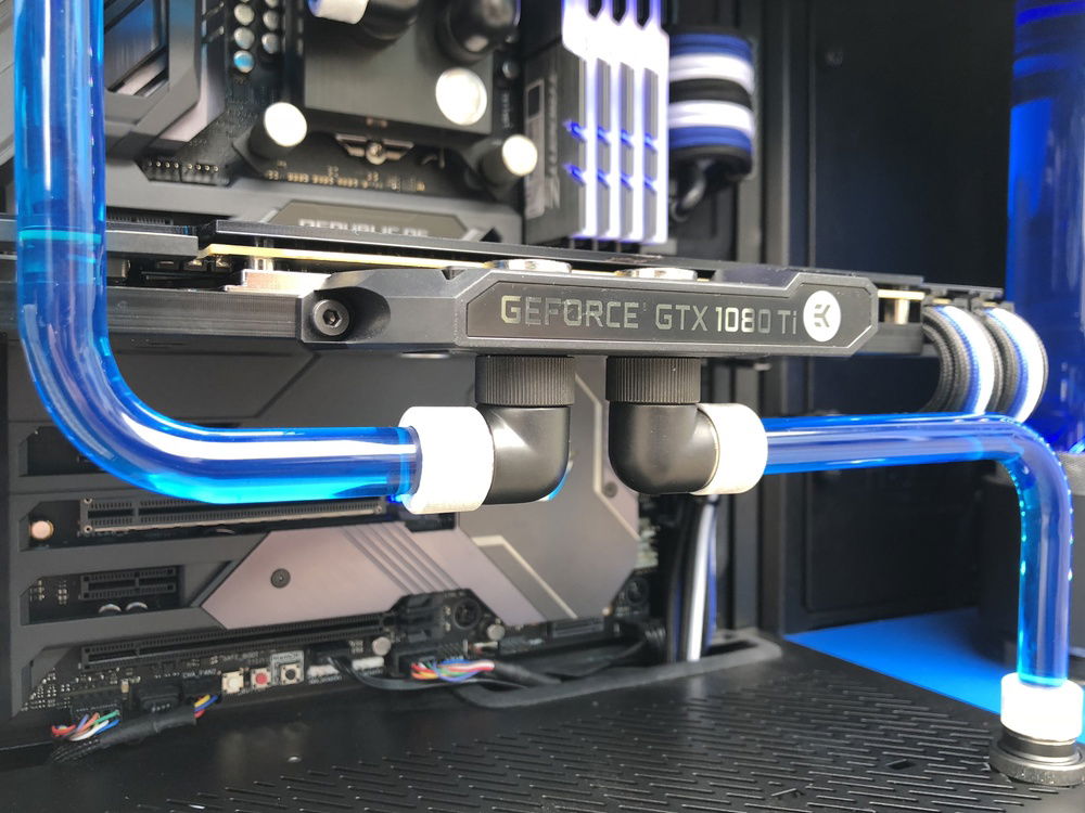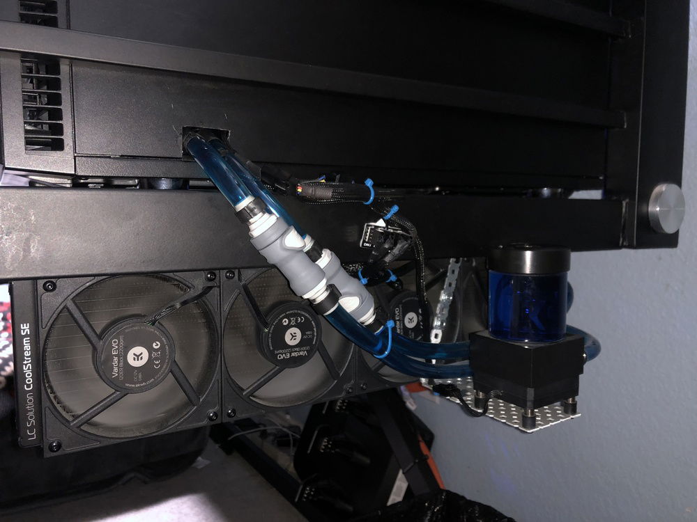 External Radiator: I figured I might get some questions on this one. Back in November, I mounted a 480mm radiator to my desk and ran tubes out of my rig using quick-disconnect fittings. This resulted in a fluid-temperature drop of 5C and overall made the system a lot quieter. It’s really overkill with the single 1080 ti now, but it was necessary with the 1080 SLI. If anyone has any questions about this in particular, feel free to leave a comment or PM me.