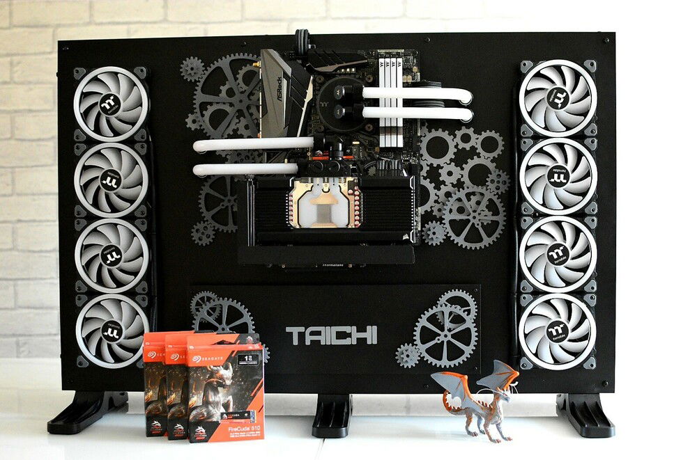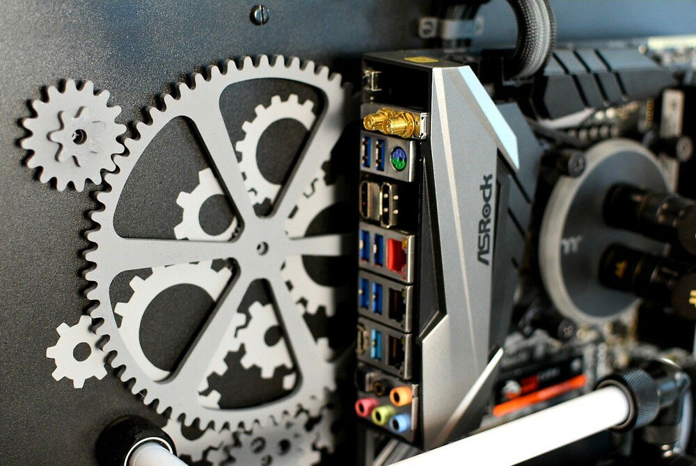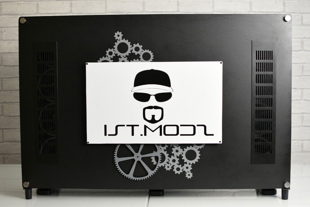 I created the side panels with aluminium composite and added some aluminium air vents and carried the ASRock motherboard theme across the case.