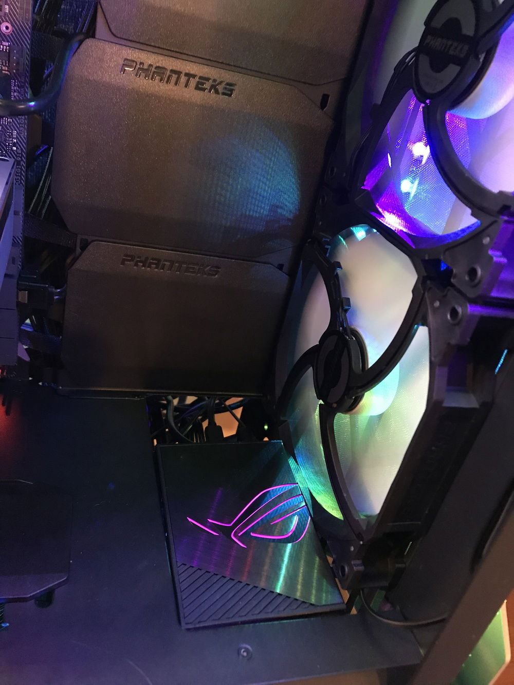 The new 120mm enermax fans arrived but the Asus RGB controller is inhibiting a third front fan install.