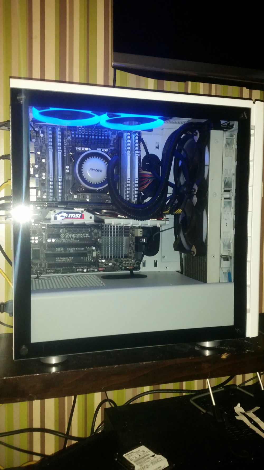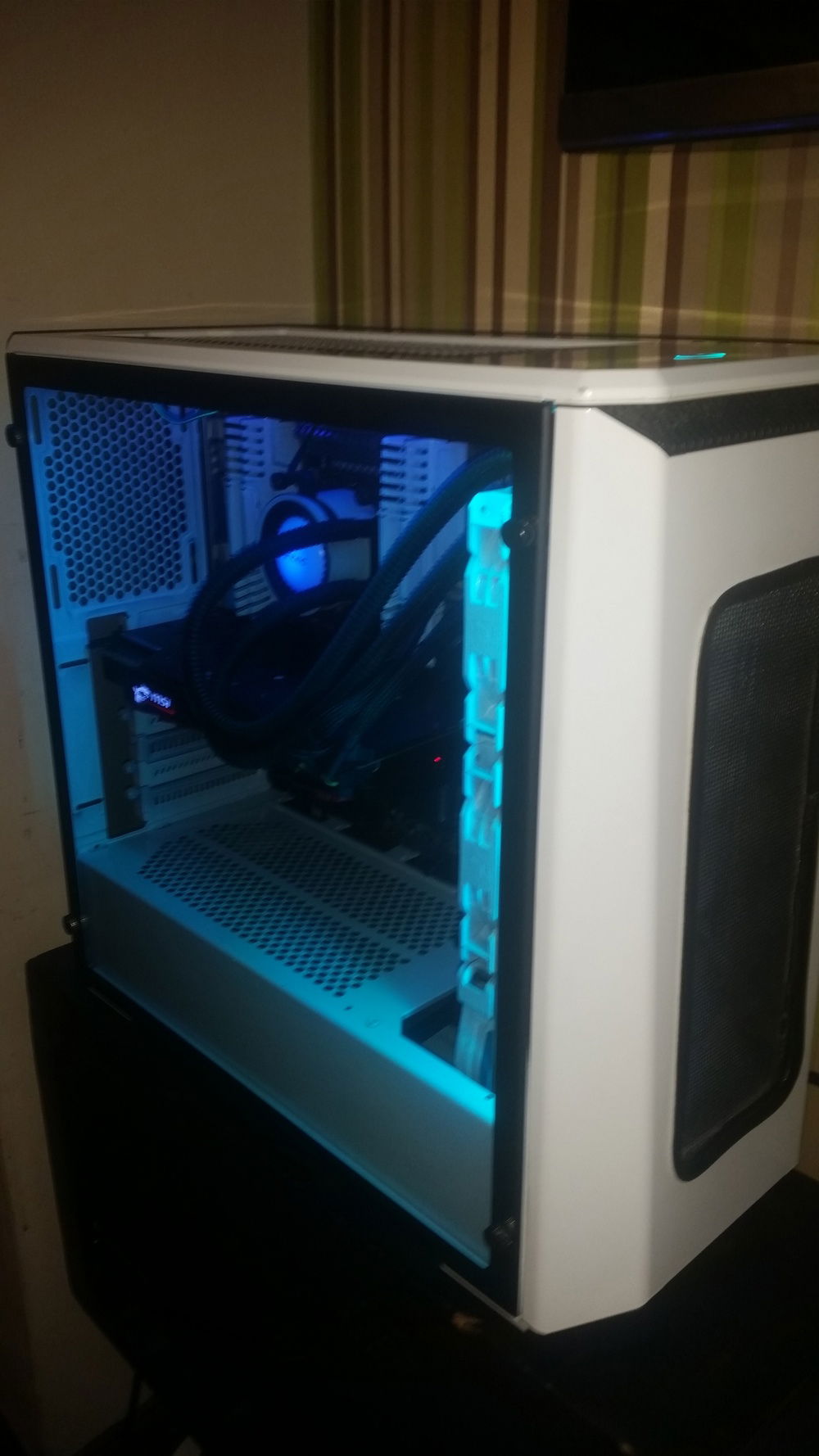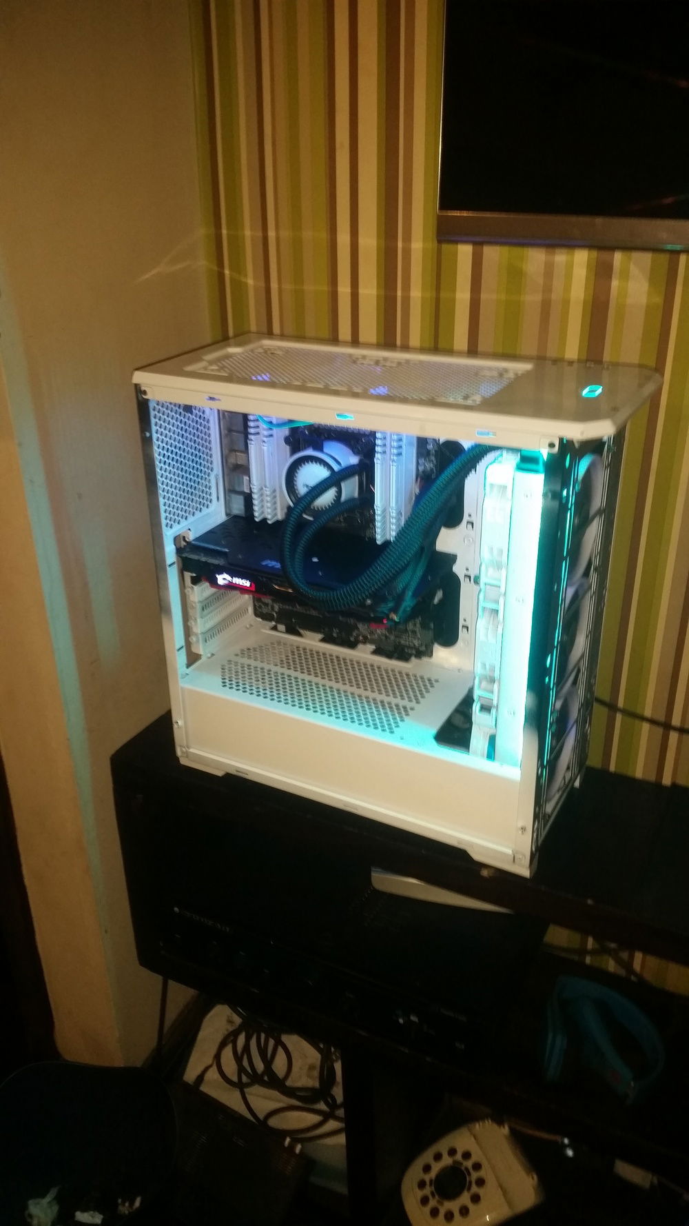 as it stands now :) happy so far. whats next is to cut some extra space into the psu shroud so can fit the last fan on my rad and i want to get a complete set of white fans and white cables
