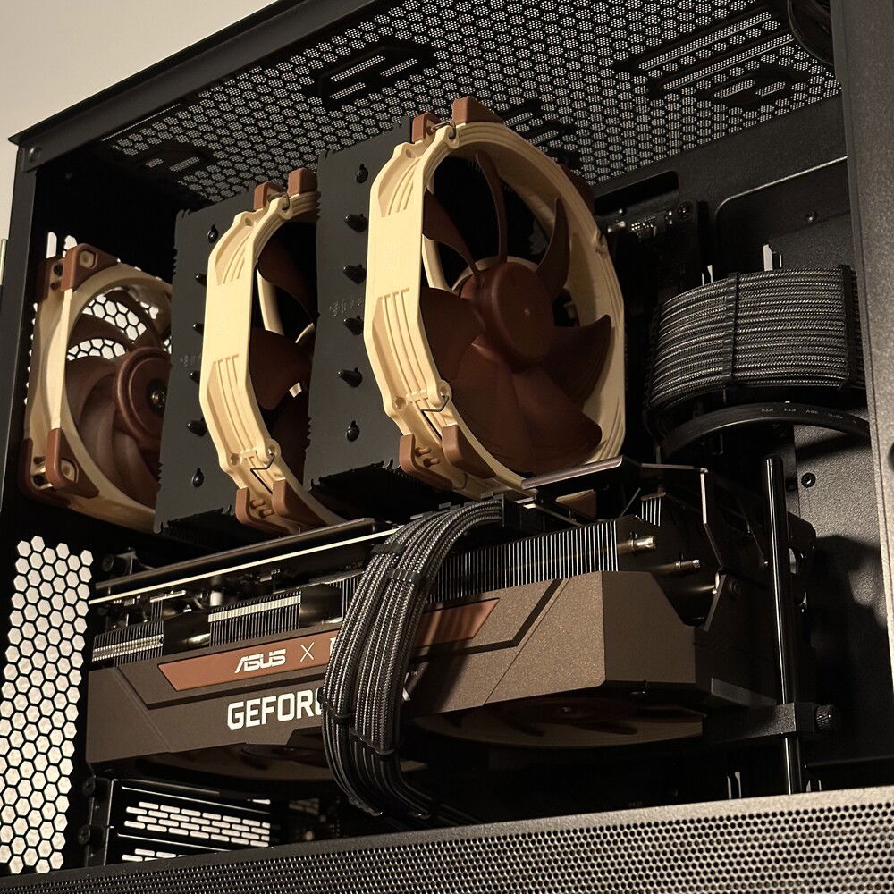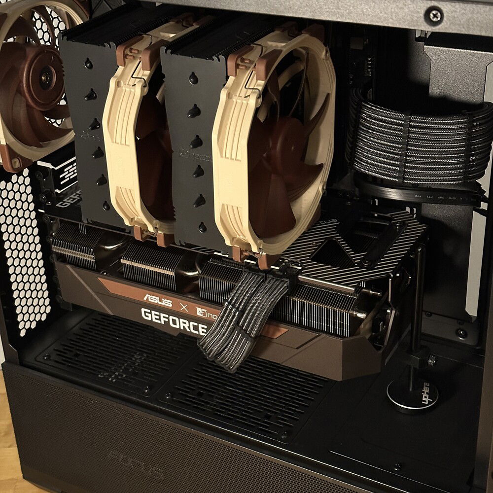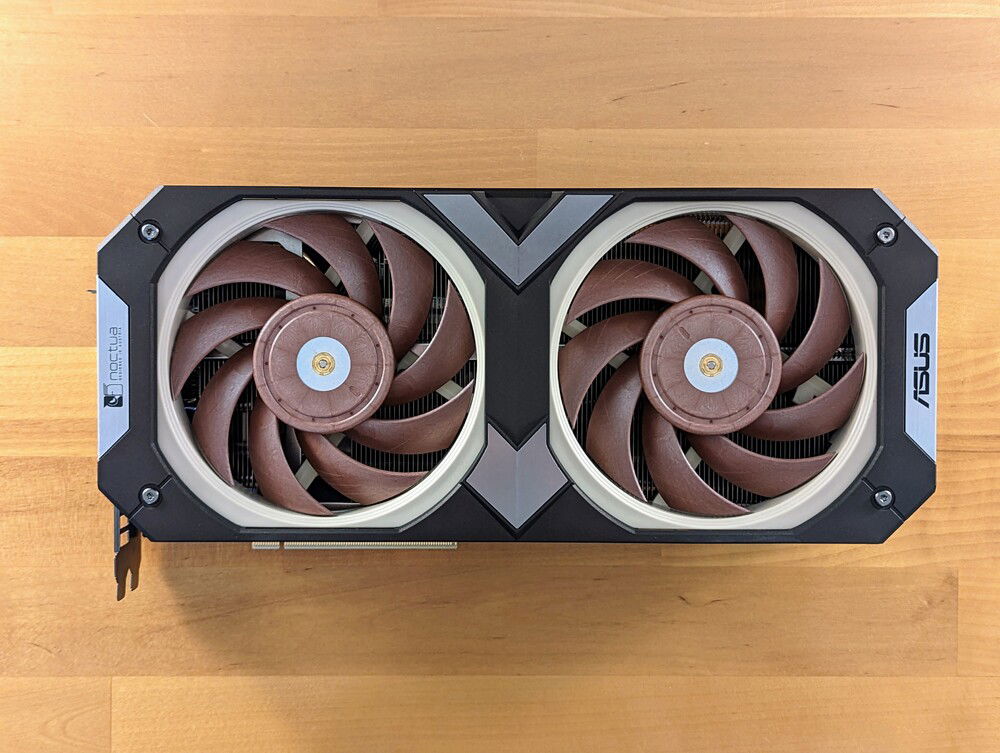 It is a right of passage for computer hobbyists to do at least one Noctua build, so when Noctua partnered with Asus to make a GPU I knew my time had finally come to reach this milestone. The GPU is truly massive, mostly because it uses two Noctua A12x25 case fans instead of the traditional slim GPU fans.