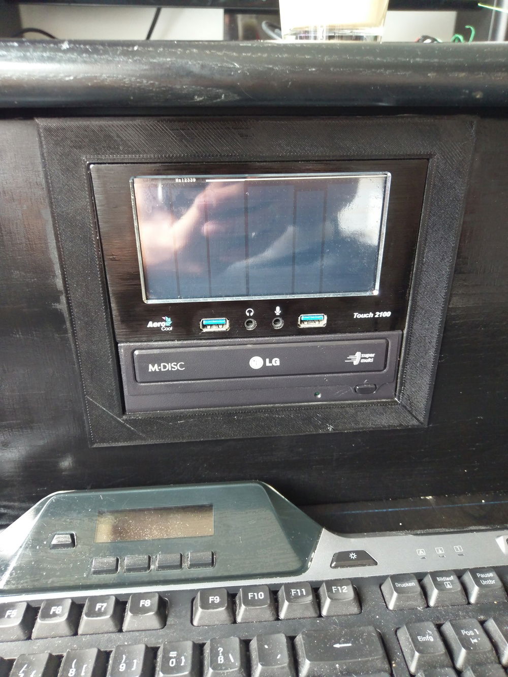 Eine neue Verkleidung für das Laufwerk und die Lüfter Steuerung dazu ein neuer Start und Reset Knopf aus dem 3D Drucker