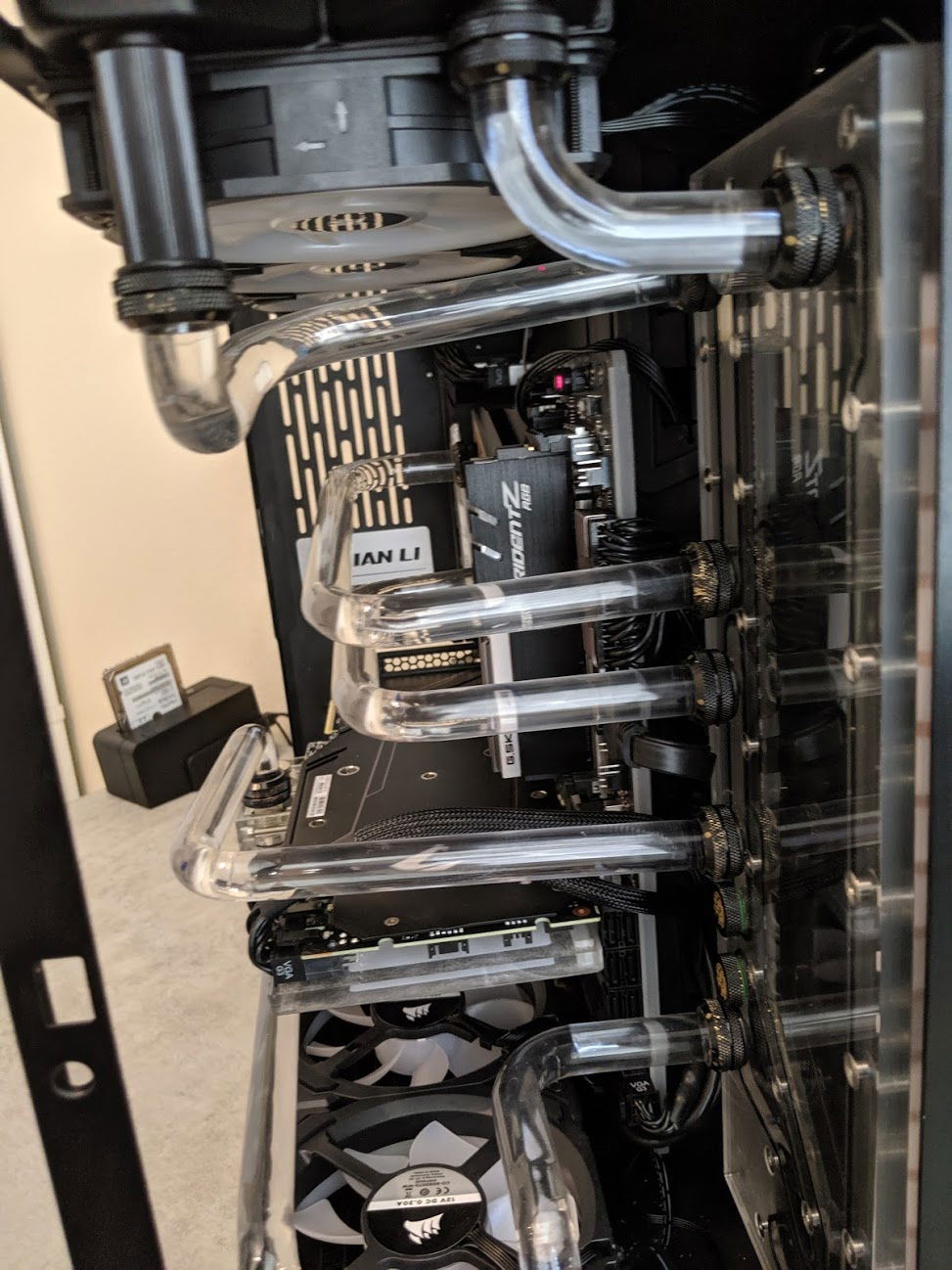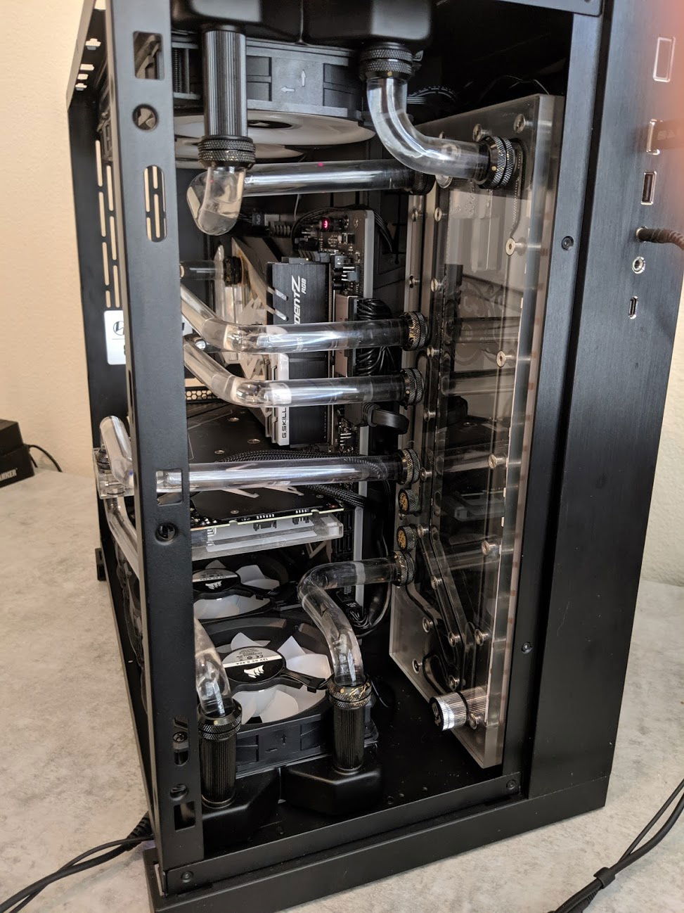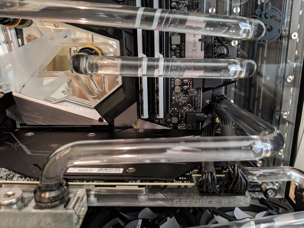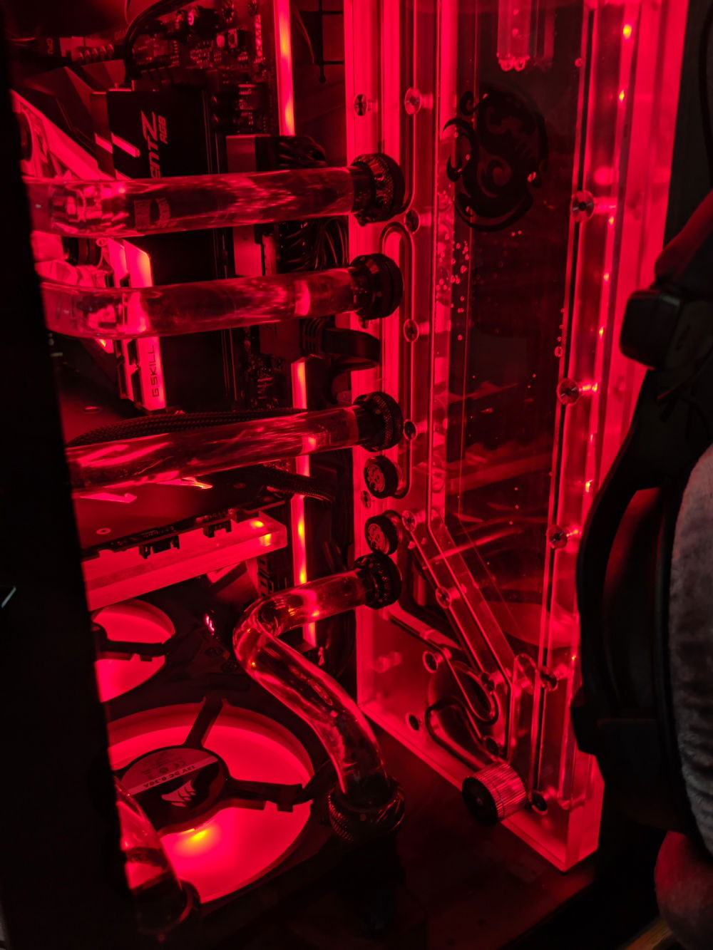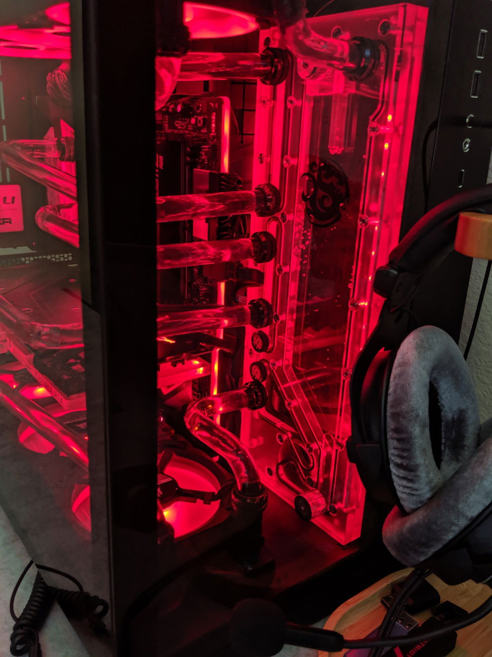 Unhappy with my first build because of a number of factors (I reversed the lines on the CPU in/out and GPU in/out), and after many stability issues, I decided to re-make my build and make it easier on myself. Being a huge Destiny 2 player on PC, I took my inspiration from The Black Armory in D2, which is a very Stealth Plane look with red glow lights.