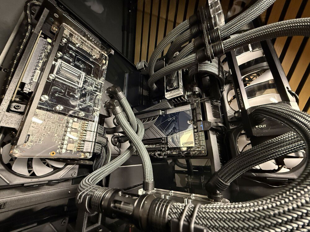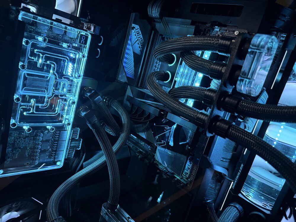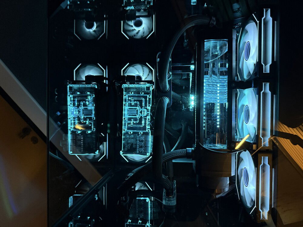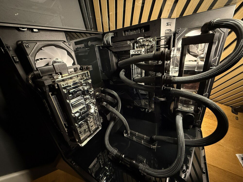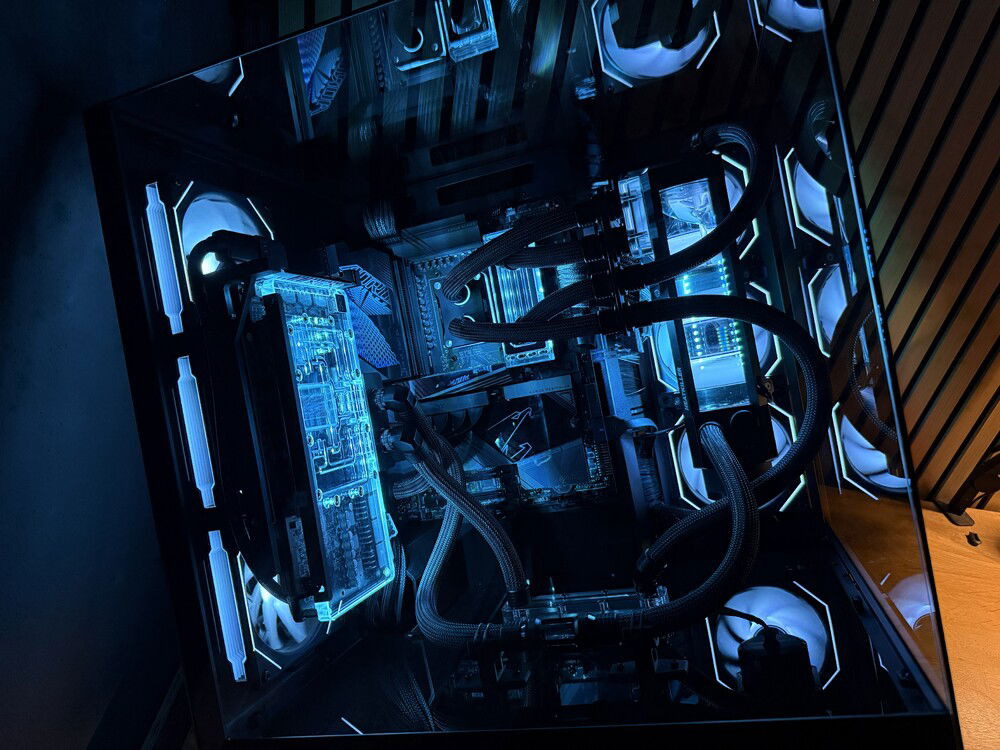 Three years ago, I built my first custom watercooled PC. I drew lots of inspiration from creators like LiquidHaus so it became a sleeved EPDM build. Nothing out of the ordinary, I used a O11D Evo in reverse mode to house two 360mm rads, a 3080 and a 5800X3D. This build took me some nerves since it was my first time sleeving, the first time custom watercooling even but I learned a lot along the way.