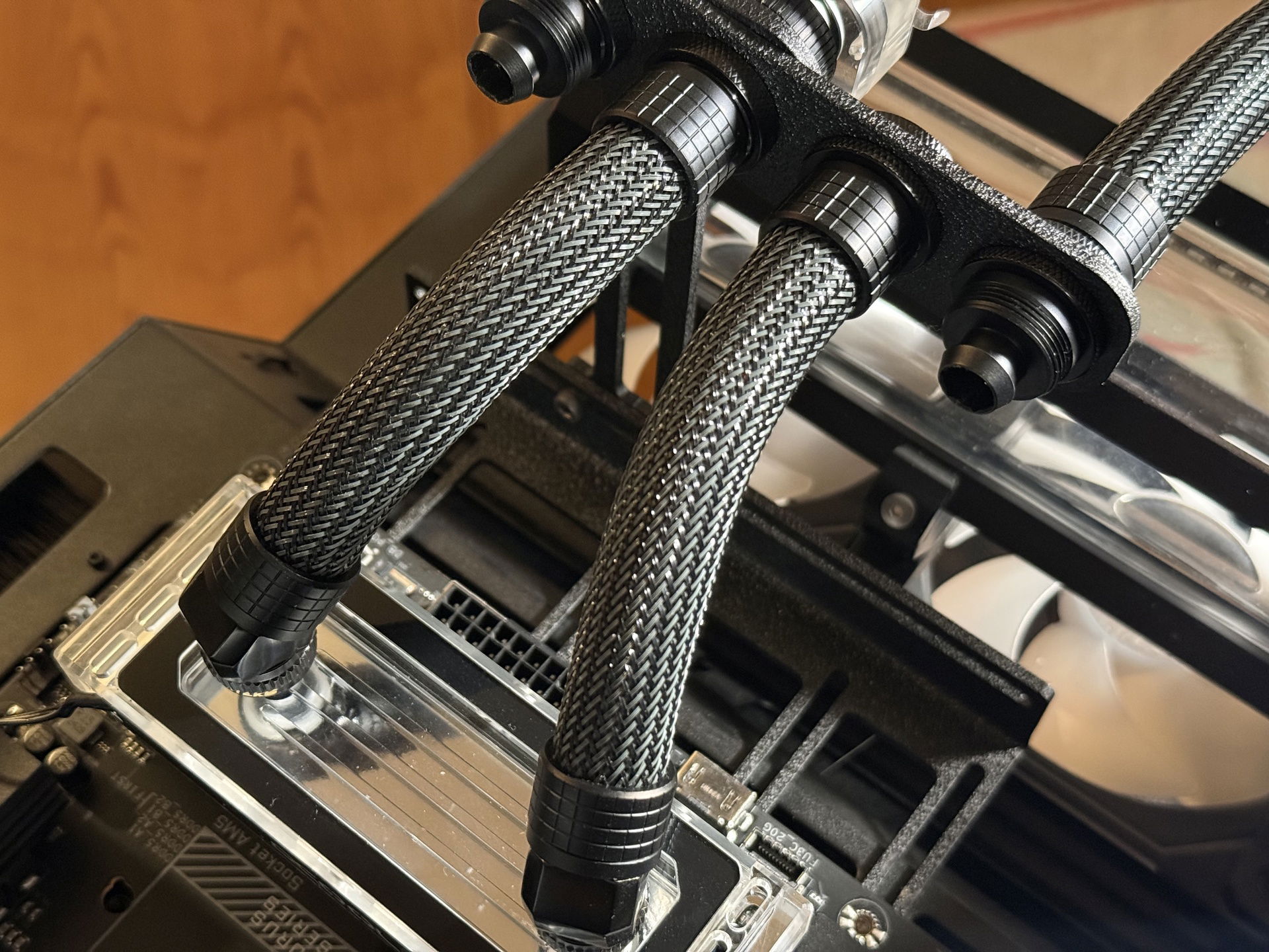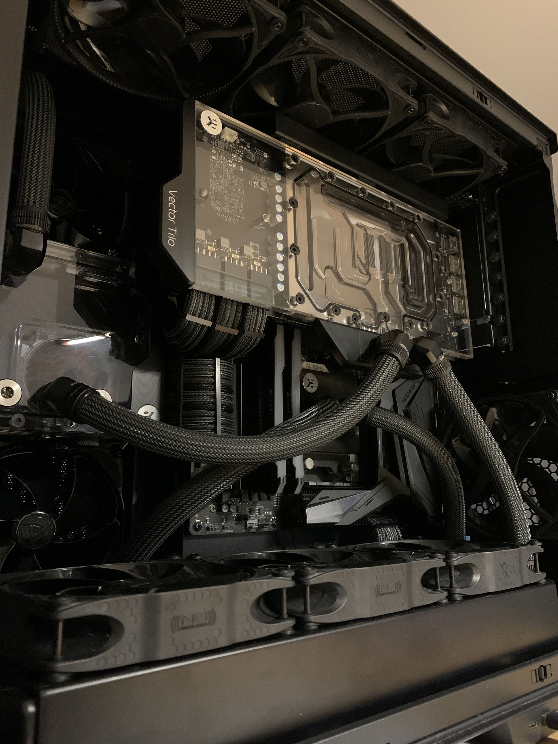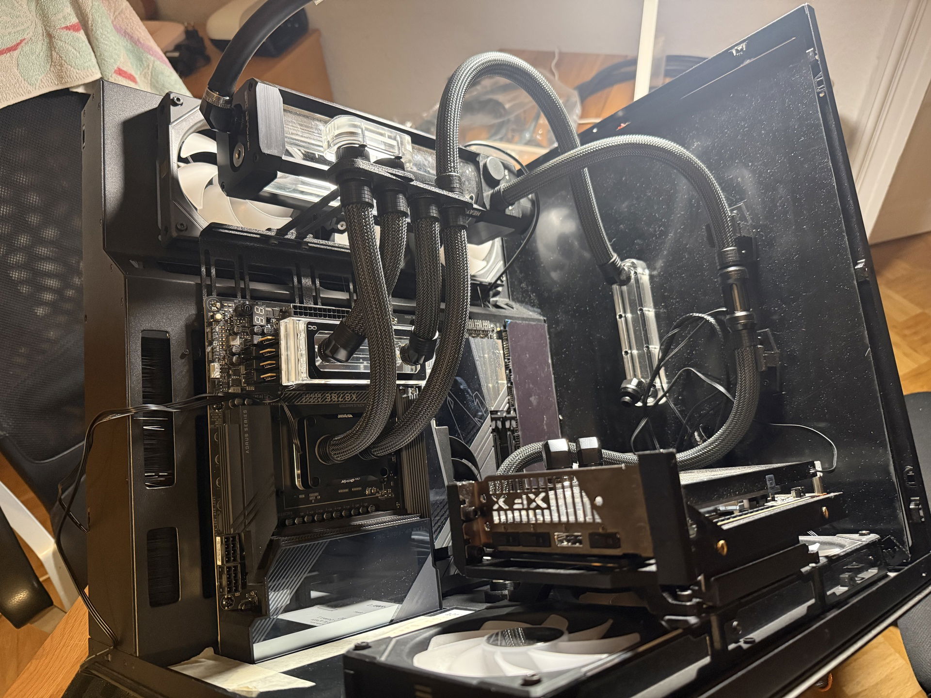 Three years ago, I built my first custom watercooled PC. I drew lots of inspiration from creators like LiquidHaus so it became a sleeved EPDM build. Nothing out of the ordinary, I used a O11D Evo in reverse mode to house two 360mm rads, a 3080 and a 5800X3D. This build took me some nerves since it was my first time sleeving, the first time custom watercooling even but I learned a lot along the way.