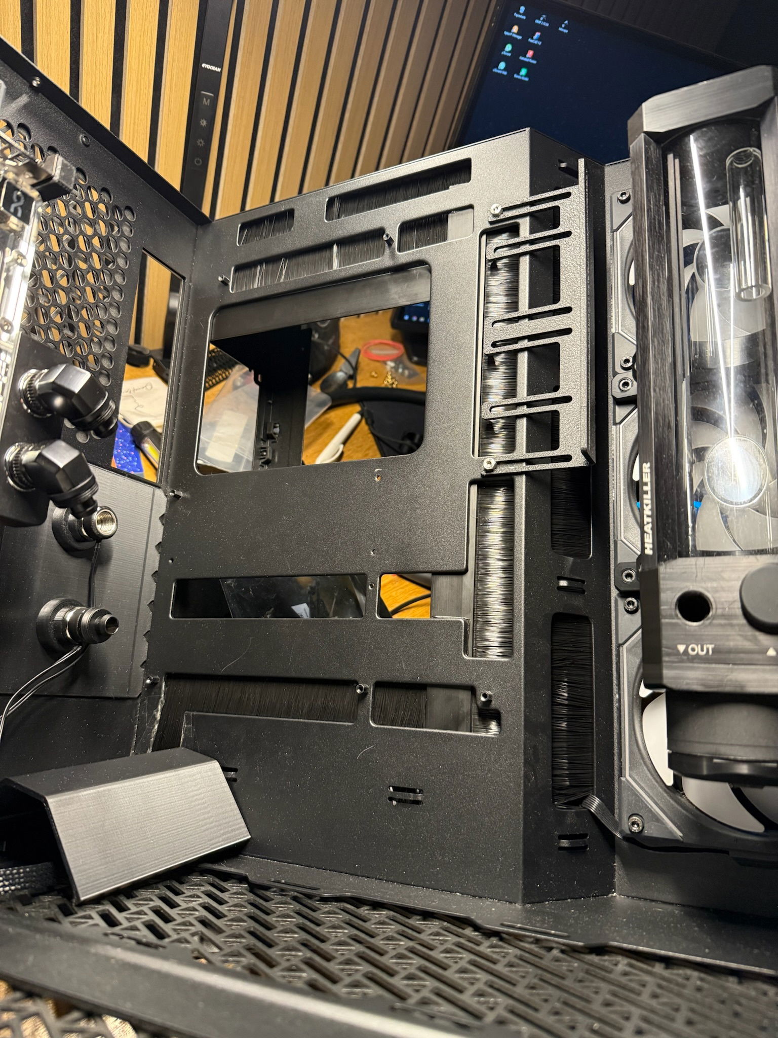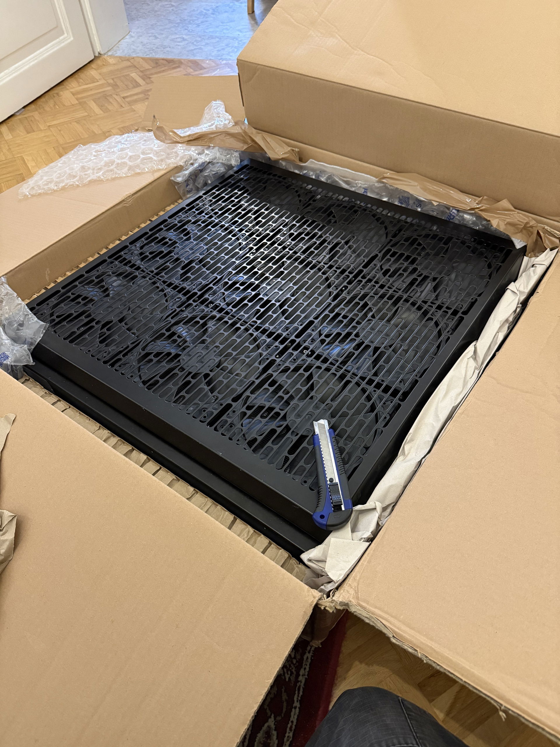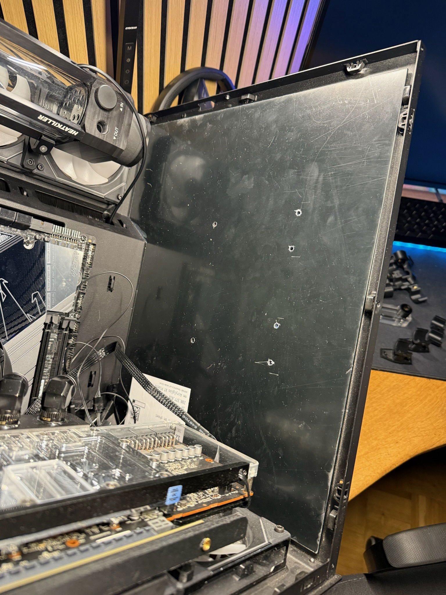 August 2025 marked the official start for my project. I unpacked the case (didn‘t snap any pictures of that unfortunately) and started to envision some concepts I would like to implement in this build. There were no mockups made, things just started growing in my head. For about three months, nothing much happened, mainly due to family, work and financial reasons. Mainboard, GPU and GPU cooler arrived in november.