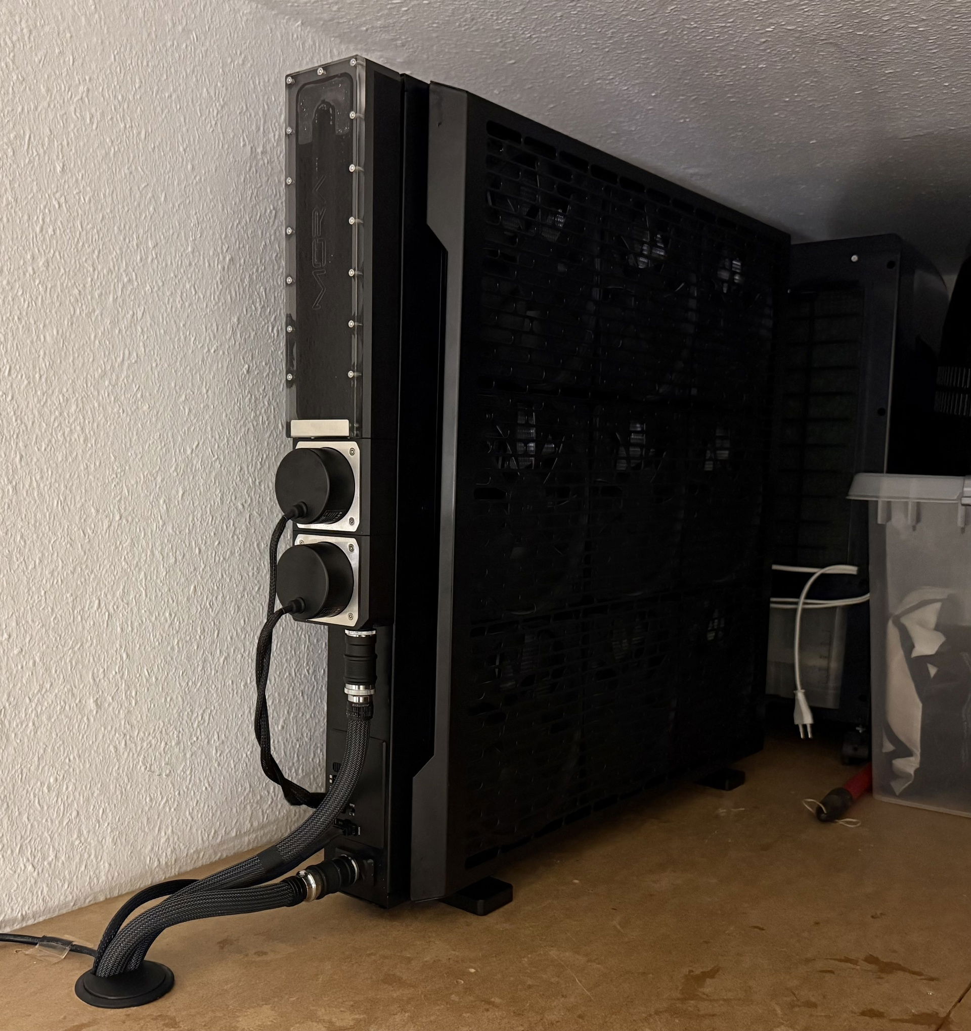External cooling was always interesting to me, I just never thought that there would ever be a use case where I really needed that and it would make sense. Then, I built myself a small room for gaming in the back of our flat‘s corridor. I never planned on really venting this since shutting the door behind me isn‘t really a thing that I do or need. But putting a Mo-Ra on top of my little room and into our little storage space was something that really intrigued me, mainly for the silence and for the heck of it.
