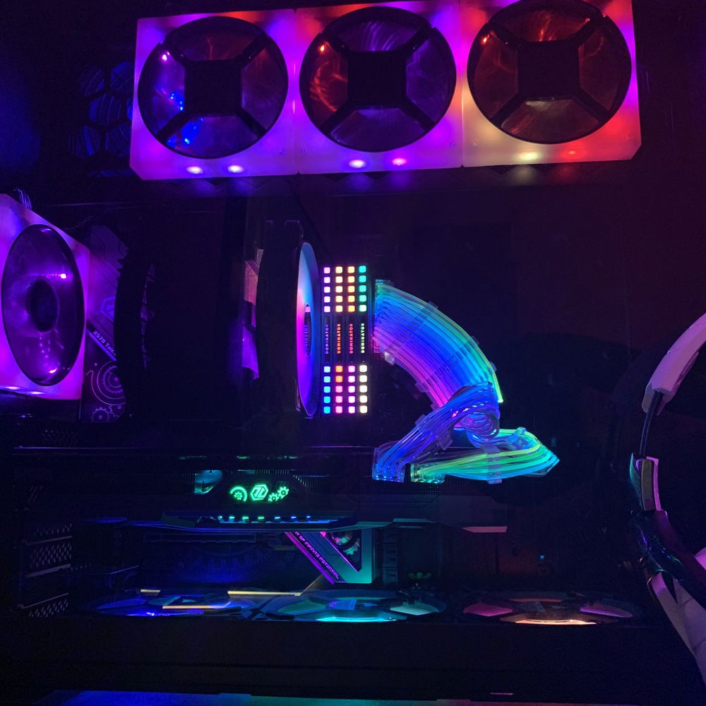 Updated the corsair fans to InWin Ego fans. updated the strimmer to the XPG strimmer. Added 360mm AIO water cooling IN WIN SR36 360mm AIO Twin Turbine Liquid CPU. Vertical mounting for GPU. Motherboard updated to the Asrock Taichi X570 (Razer Edition)