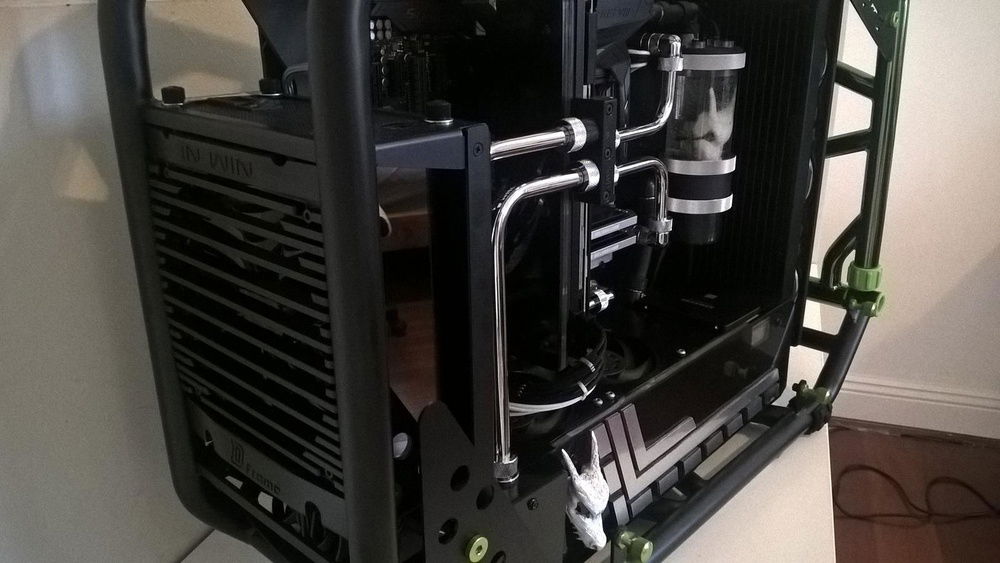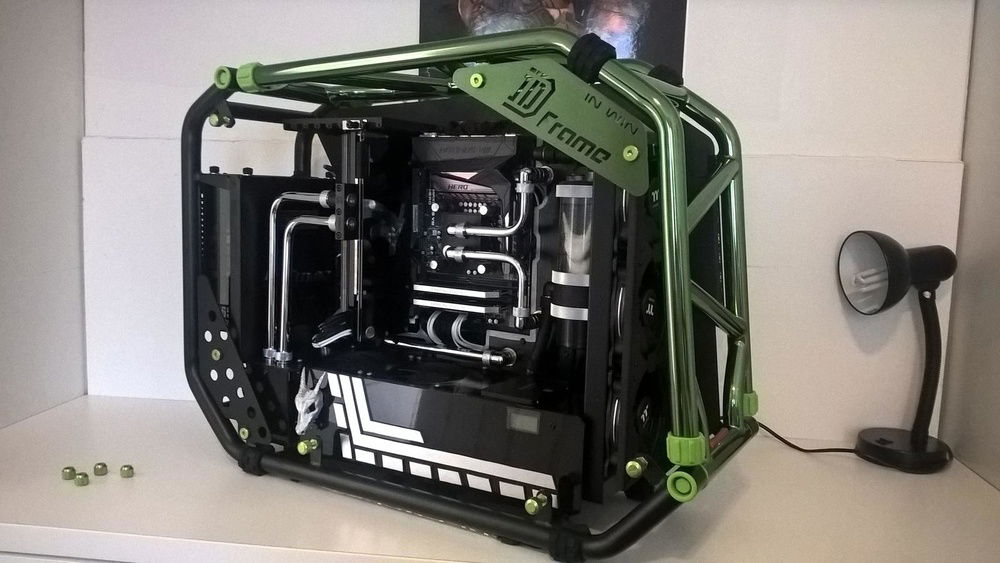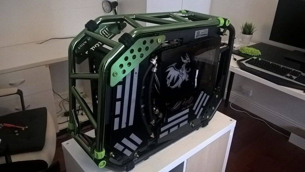 For this special build, I knew the case had to be something out of the ordinary and within my likings. Now as a big In Win fan/supporter, I decided to delve into their signature series of chassis and the one which caught my eye the most was the D-Frame 2.0. At first this case was only produced in Black/Gold variant which didn't suit my colour scheme. However a few months in, the Blue/White and Black/Green variants where announced. Now as I am situated in Australia, I had to special order the Green variant directly via In Win, and this case took almost 4 months to arrive. From my knowledge, this is probably the only retail unit in Australia and has almost unlimited potential to how you build inside it.