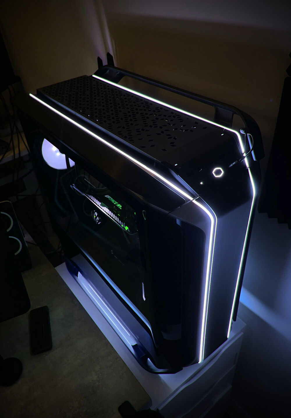 decided on a futuristic high tech aesthetic resembling Tron and a neutral scheme so it looks great with rgb on and off.