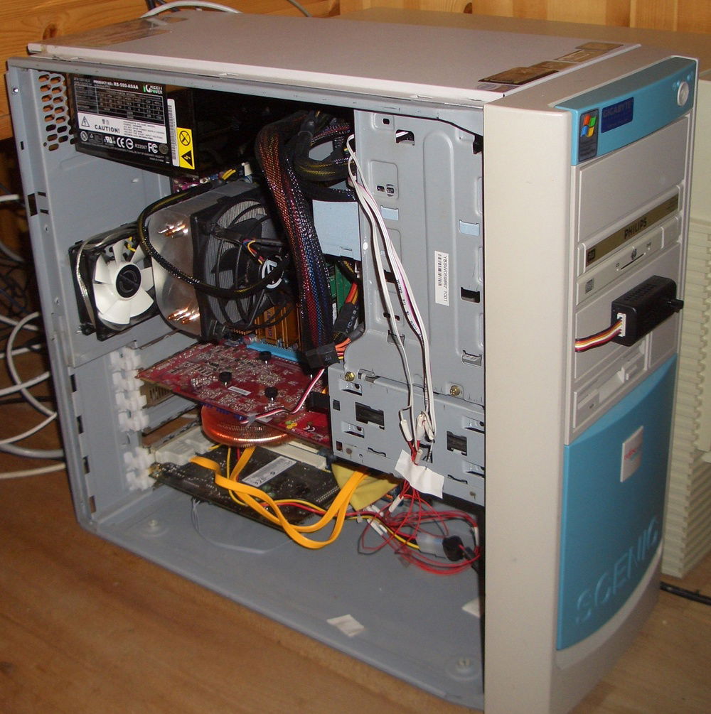 My 16 year old me build this one. This was my first build ever in 2006 using a Fujitsu Siemens case. I was gifted this case/computer as "trash" with a dead power supply. I saved a good amount of money to order some new hardware for that case. I ended up with an C2C E6400, 2GB of RAM and a Shapphire Radeon X1950 Pro. I changed the cooler to a Zalman one to silence graphics card.