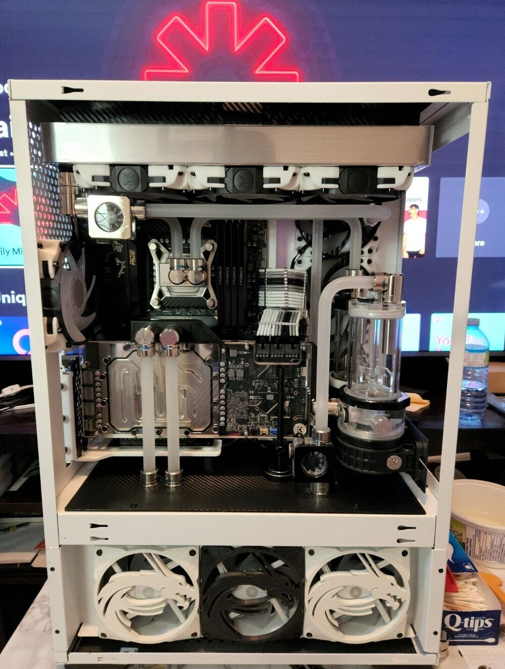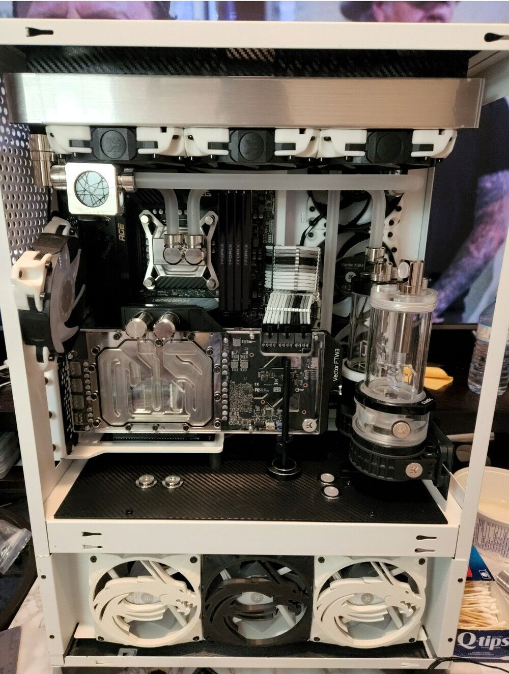 It's not yet fully complete but close. Im replacing my 3080ti ftw3 EK block for a Watercool Heatkiller. Also working on some drawing for some vynil i will add for aesthetics. I will add UV Led strips.
