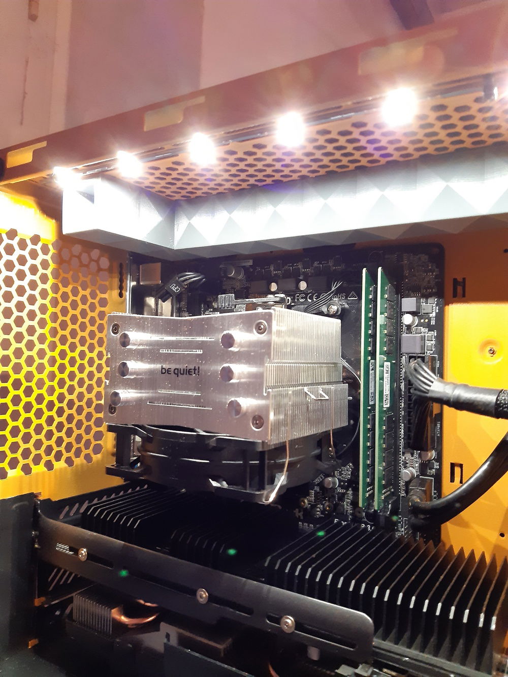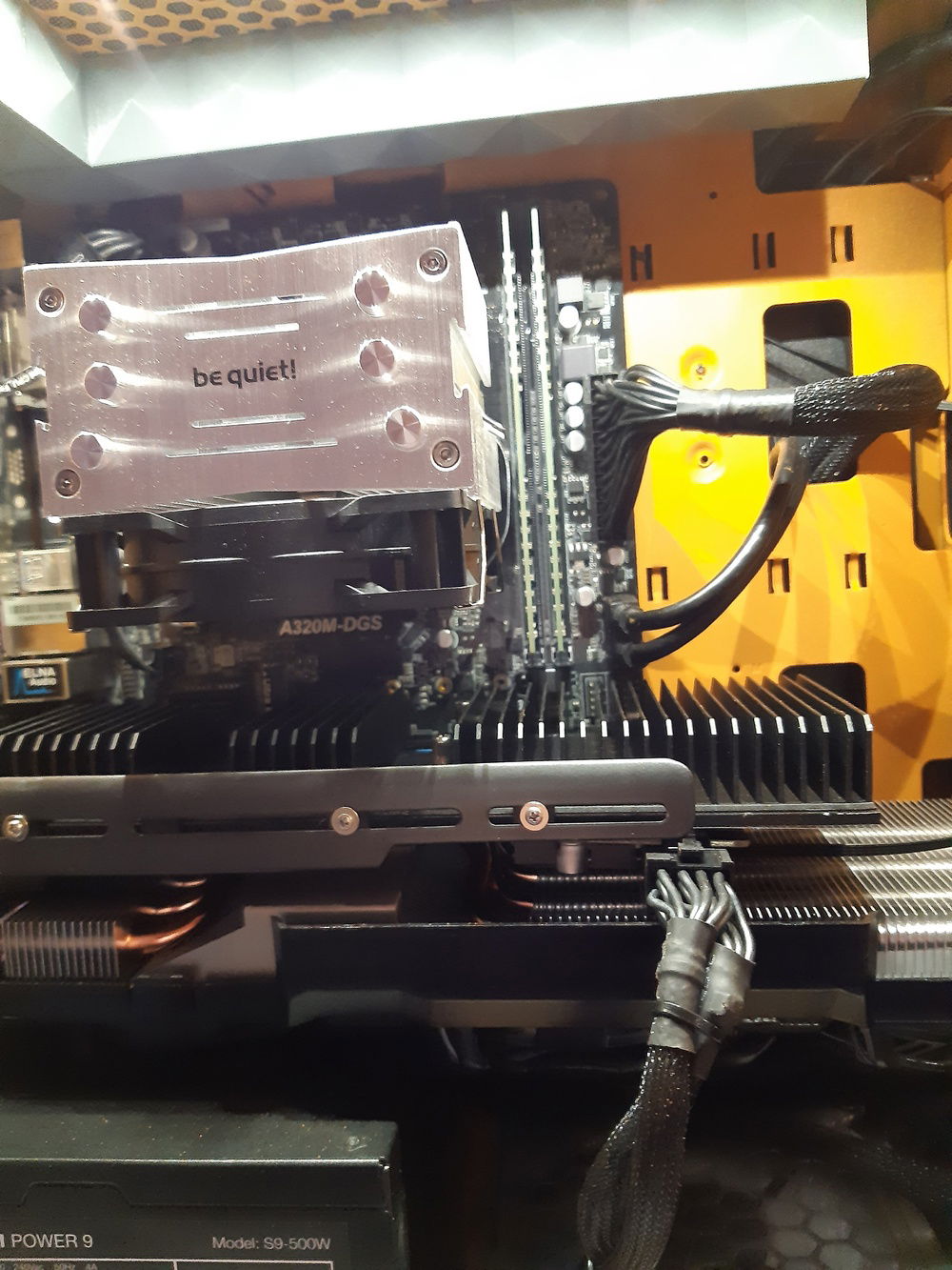 R5 1500x Be quiet pure rock slim A320mDGS Crucial DDR4 2133 at 2400MHz (Even my 3000 kit wont run faster, realy had bad luck with the memory controller) Gigabyte RX570 4GB (Someone had an RX580 8G that was chrashing during games, sorprise someone forceflashed the bios . 50€ RX570 isnt bad either ) Arctic AcceleroIV SST-PS15B-G Kinsgton SSD UV300 (UV400 is the only one listed ) Seagate 2.5" 1TB drive Be quiet 550W 80+ Bronze PSU (Not yet listed in the parts list, taken the lowerst rated bequiet 500W one)