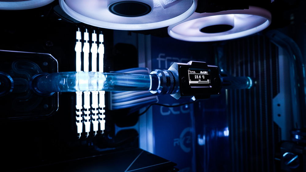 Water cooling: Bykski flowmeter, temp sensor, fittings, extensions, angles