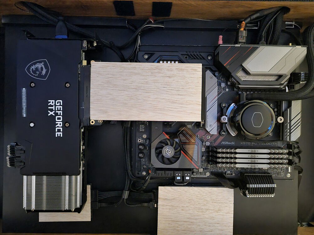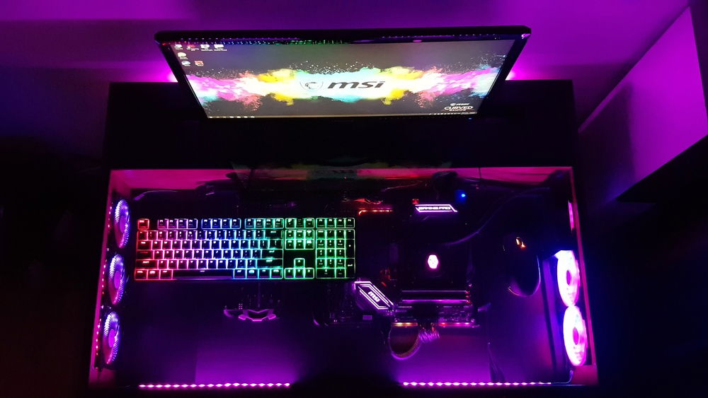 RGB: SilverStone LSB01 RGB Controller, SilverStone LSB02 RGB Controller, 4x SilverStone LS02 RGB LED 2-pack Strips, custom coded Arduino powered 8x16 ARGB LED flexible panel on the GPU riser cable