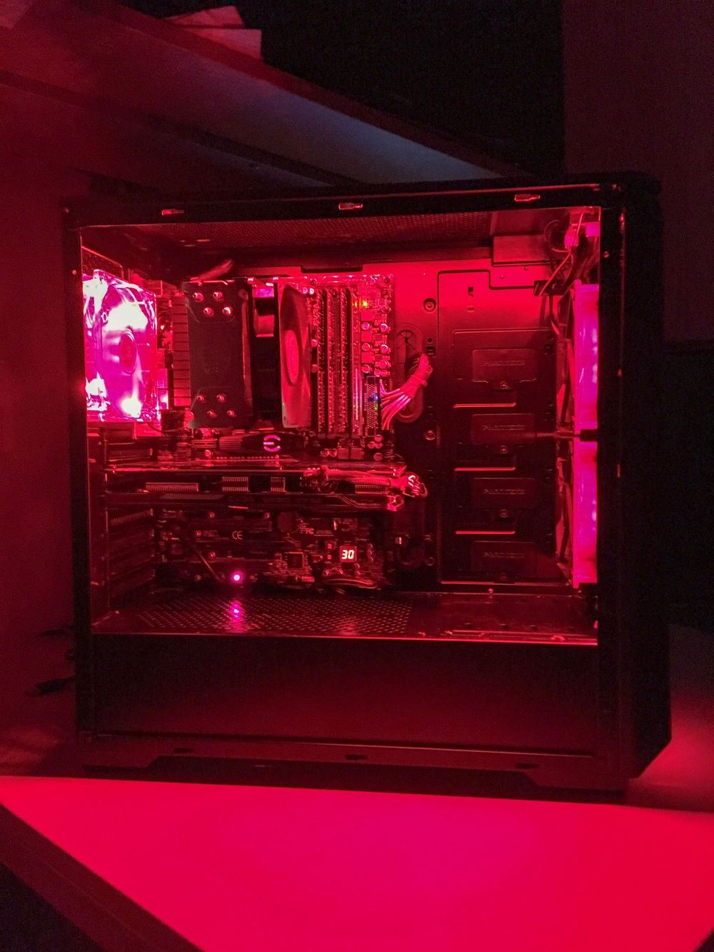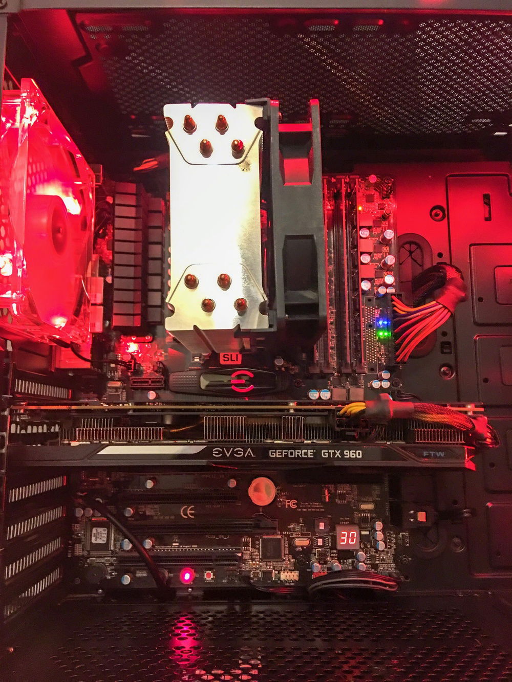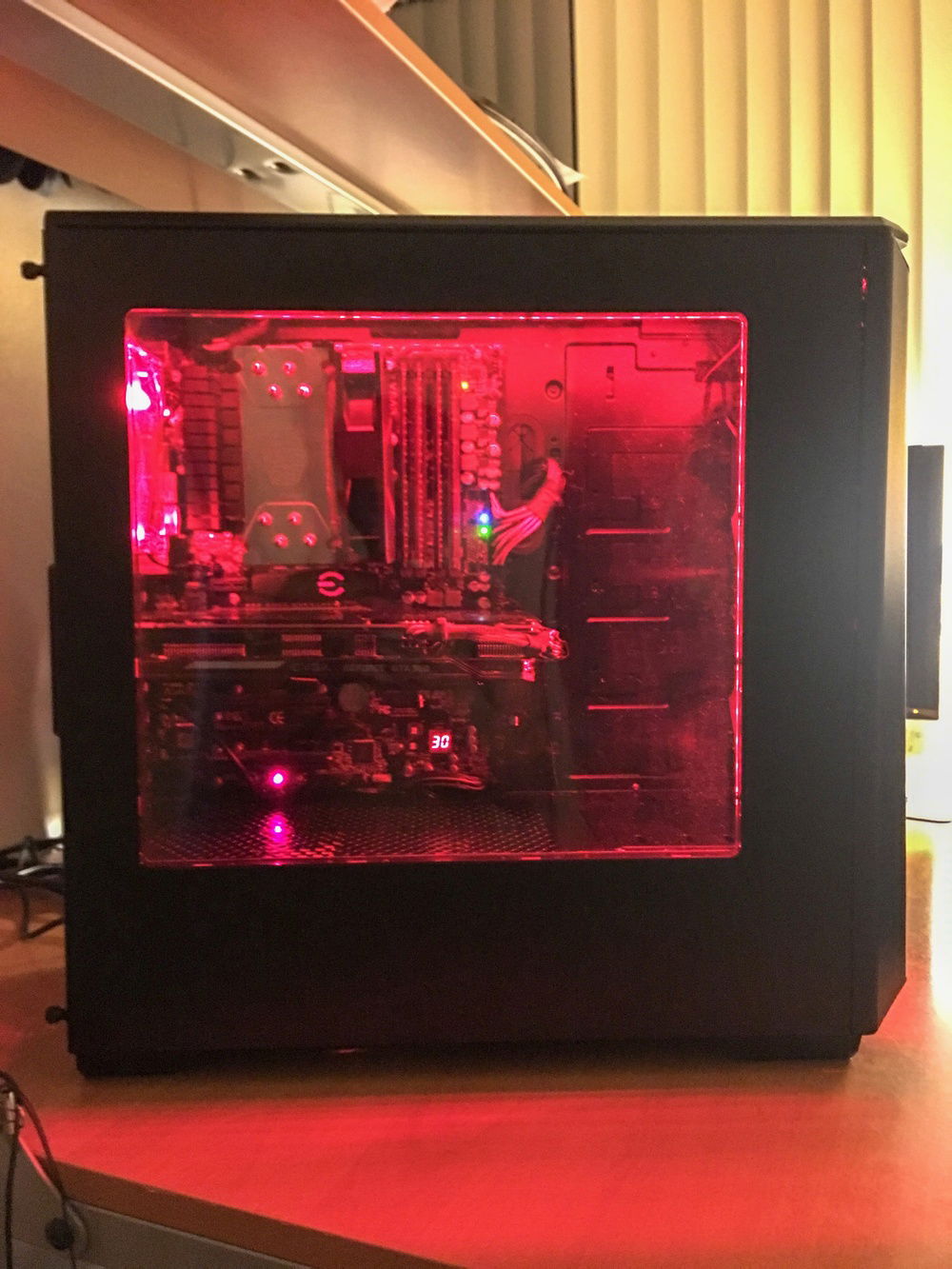 This build was put together quickly as a budget 1080p computer for resale. I found an old computer on Craigslist that was being sold for $70 that came with: CPU, cooler, motherboard, ram, and power supply. That's basically half the computer for $70 so I picked it up right away. Everything else was pretty easy to find locally for standard prices. I added two red led strips and a cheap SSD to finish off the build.