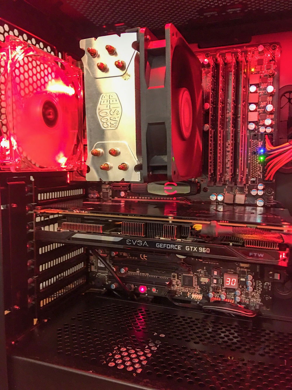 The CPU was easily overclocked to 4.0ghz. I'm pretty sure with this motherboard I could've got higher, but didn't want to push it due to stability concerns for the next user. Overall the temps stayed below 60c while gaming and probably would've been better if I added 2 exhaust fans in the case. I really like this EVGA motherboard and wish I could keep it around. It has some lighting and even an error code display.
