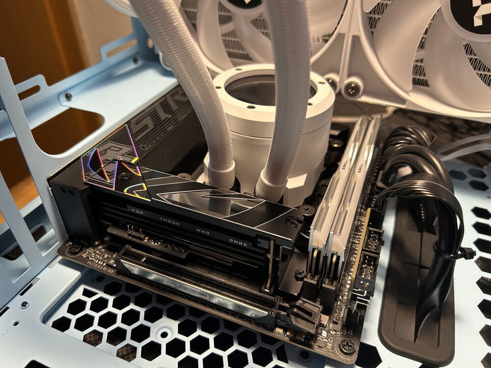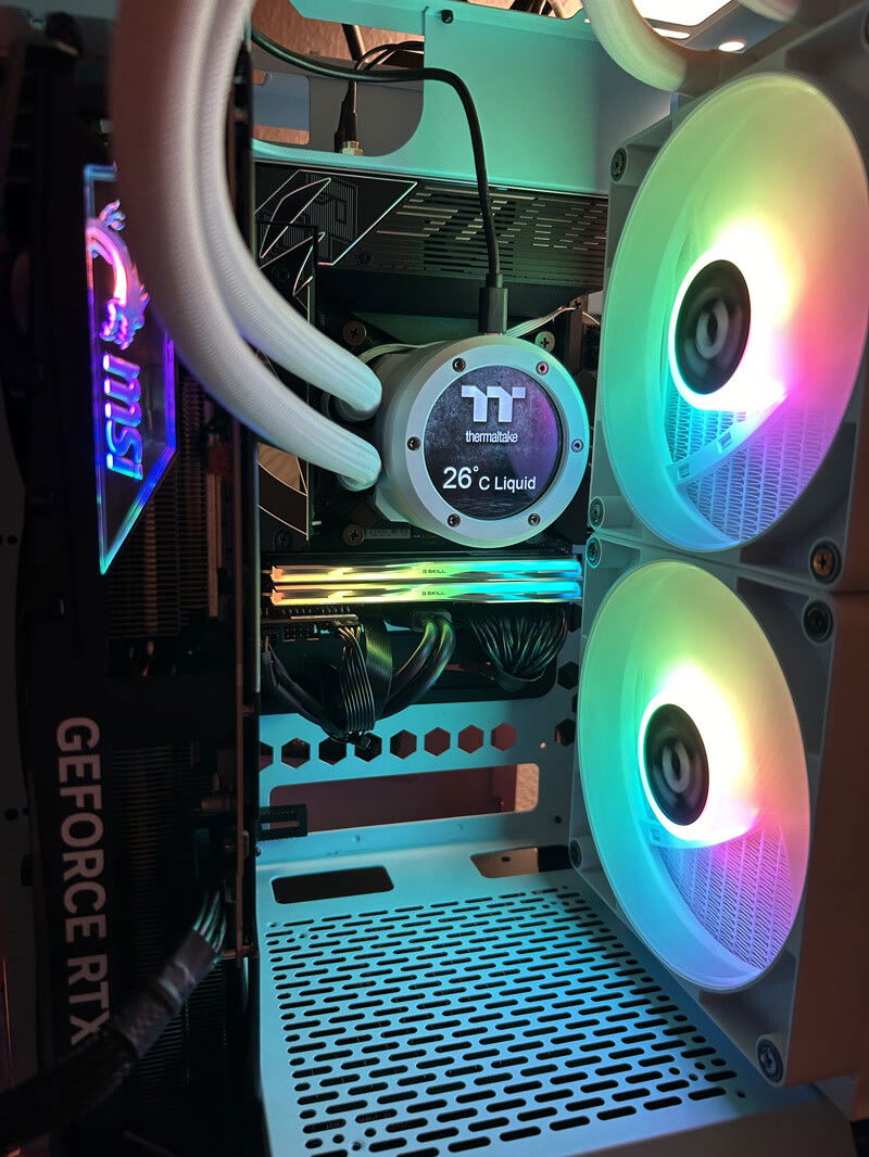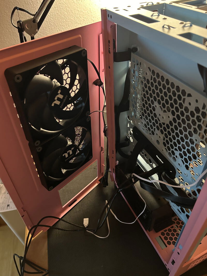 But I also have to criticize Thermaltake: 1. the case is definitely not a "micro tower" or "mini tower". It is a midi tower and with the depth even a normal PC tower, but only with mini-ITX compatibility. 2 I actually like to mount water cooling systems on the side with the hoses pointing downwards. However, the TH280 can only be mounted with the hoses facing upwards, which is a shame. Unless you drill a few extra holes in the radiator mount. The smaller AiO (240 mm) is required to install the hoses downwards as standard. 3. according to the website, the case has a sophisticated airflow concept. But unfortunately this is not true. According to Thermaltake, cold air should flow from the outside through the radiator into the inside of the case. But there are only fans on the AiO that can blow the air outwards. So from the inside of the case to the outside.