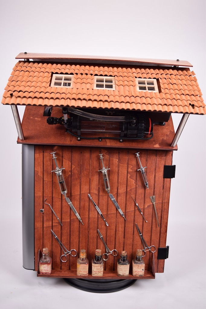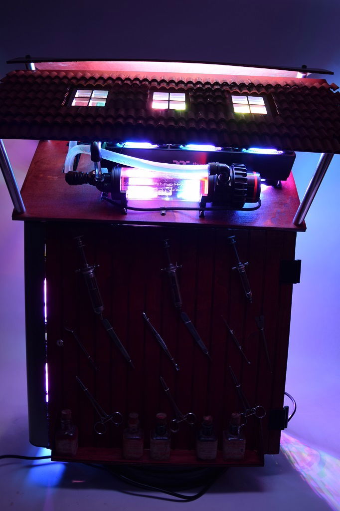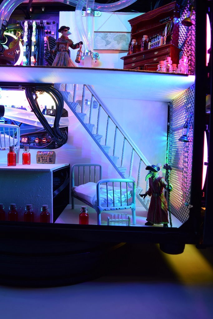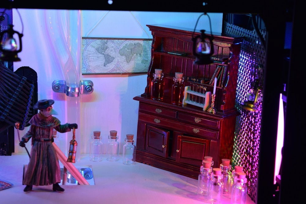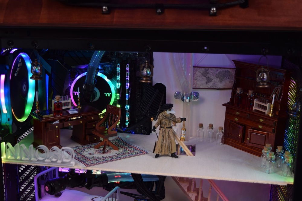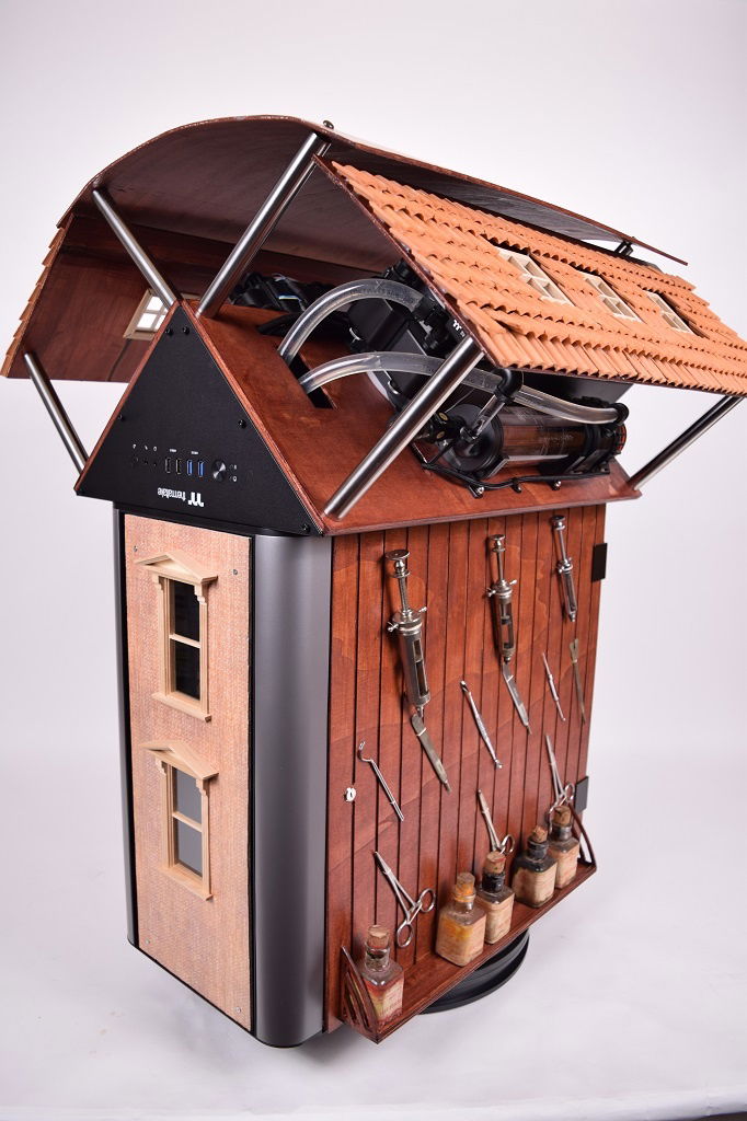 The project "The Plague Doctor" was born after the vision of the Lazzaretto in Venice that was a structure used in the seventeenth century to accommodate the patients who had infected the plague that was spreading in Italy at that time and the famous novel by Alessandro Manzoni, "I promessi sposi ". Characteristic are the garments used by the doctors of that period: a mask in the shape of a beak as a respirator to keep away the bad smells considered, at the time, the trigger for epidemics; water repellent dress in waxed canvas with gloves, shoes and wide-brimmed hat. The project requires the use of two cabinets, Level 20 GT and Core P90. The idea is to cover the exterior of the cabinets to give a shape that gives the idea of a historic hospital building using different materials such as brick, tiles and windows. This solution appeared to me after seeing the exterior of the hospital, now in disuse, of Poveglia, still in Venice. The interior, on the other hand, will be decorated with scale objects by doctors of the plague and much more so as to reflect the rooms of a hospital of the time. The P90 cabinet is perfect to be adapted as "waterstation" and also from the roof of this building, in fact it will be positioned above the Level 20 GT in a horizontal way.