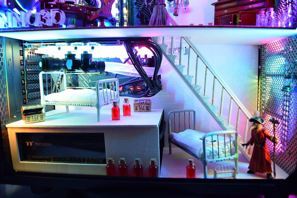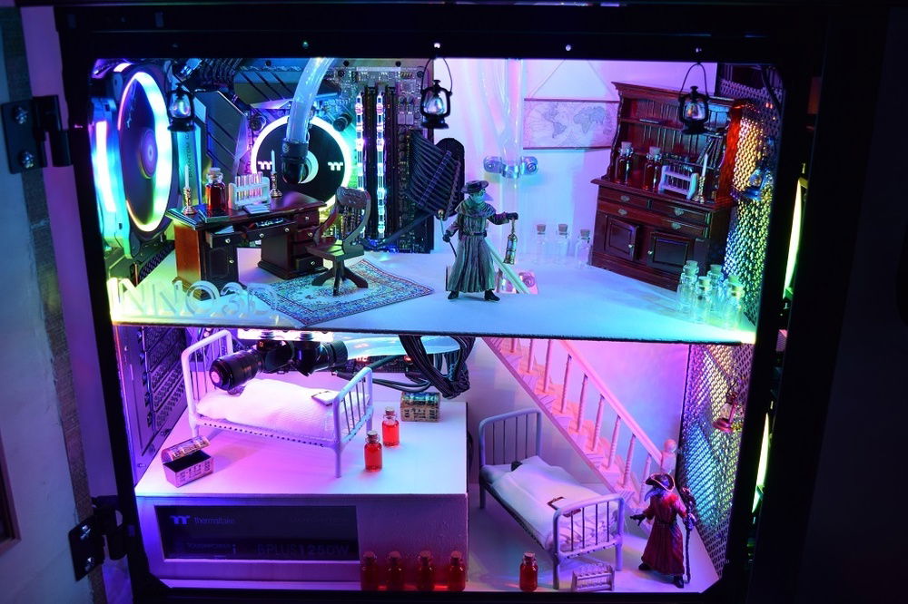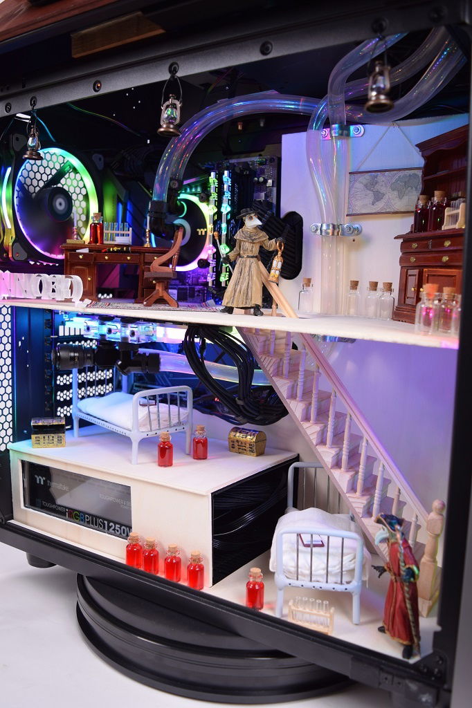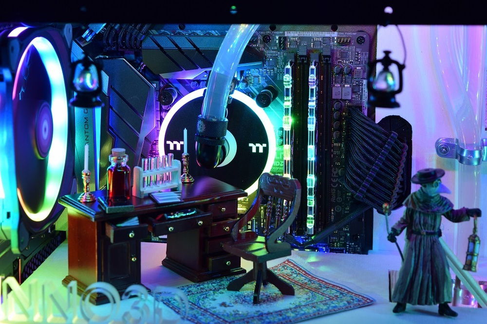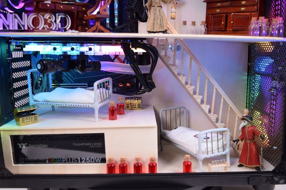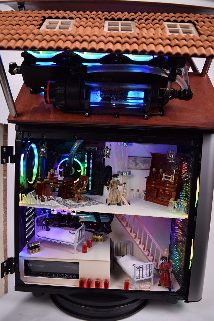 The project "The Plague Doctor" was born after the vision of the Lazzaretto in Venice that was a structure used in the seventeenth century to accommodate the patients who had infected the plague that was spreading in Italy at that time and the famous novel by Alessandro Manzoni, "I promessi sposi ". Characteristic are the garments used by the doctors of that period: a mask in the shape of a beak as a respirator to keep away the bad smells considered, at the time, the trigger for epidemics; water repellent dress in waxed canvas with gloves, shoes and wide-brimmed hat. The project requires the use of two cabinets, Level 20 GT and Core P90. The idea is to cover the exterior of the cabinets to give a shape that gives the idea of a historic hospital building using different materials such as brick, tiles and windows. This solution appeared to me after seeing the exterior of the hospital, now in disuse, of Poveglia, still in Venice. The interior, on the other hand, will be decorated with scale objects by doctors of the plague and much more so as to reflect the rooms of a hospital of the time. The P90 cabinet is perfect to be adapted as "waterstation" and also from the roof of this building, in fact it will be positioned above the Level 20 GT in a horizontal way.