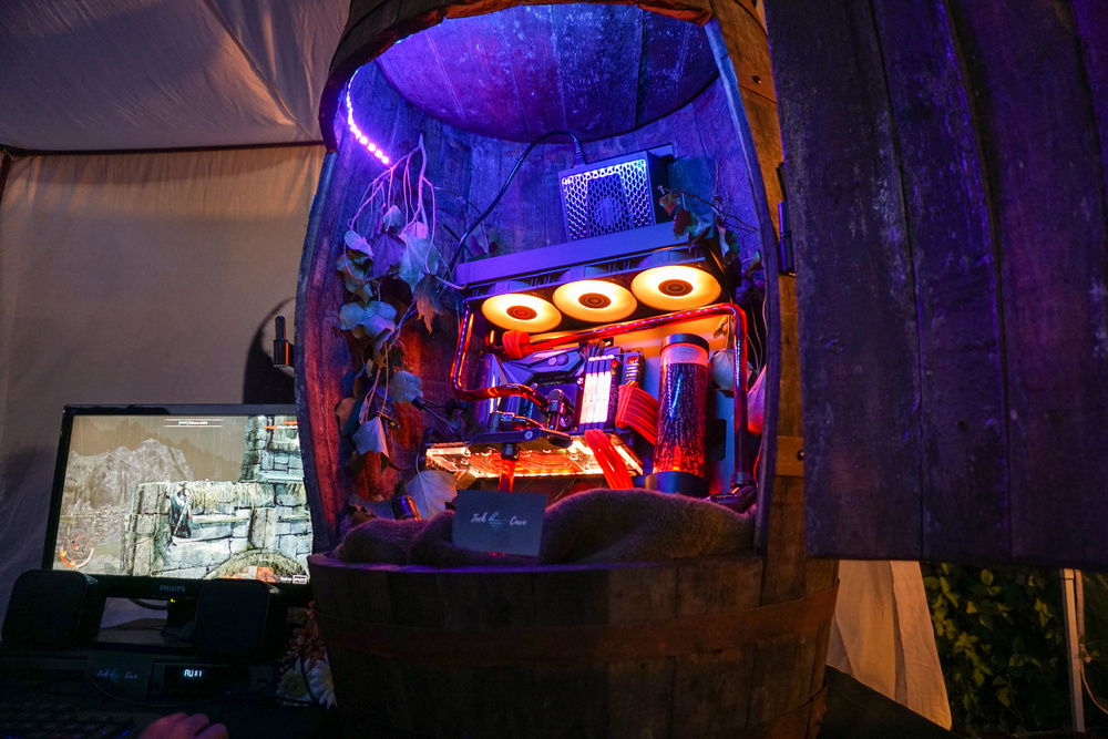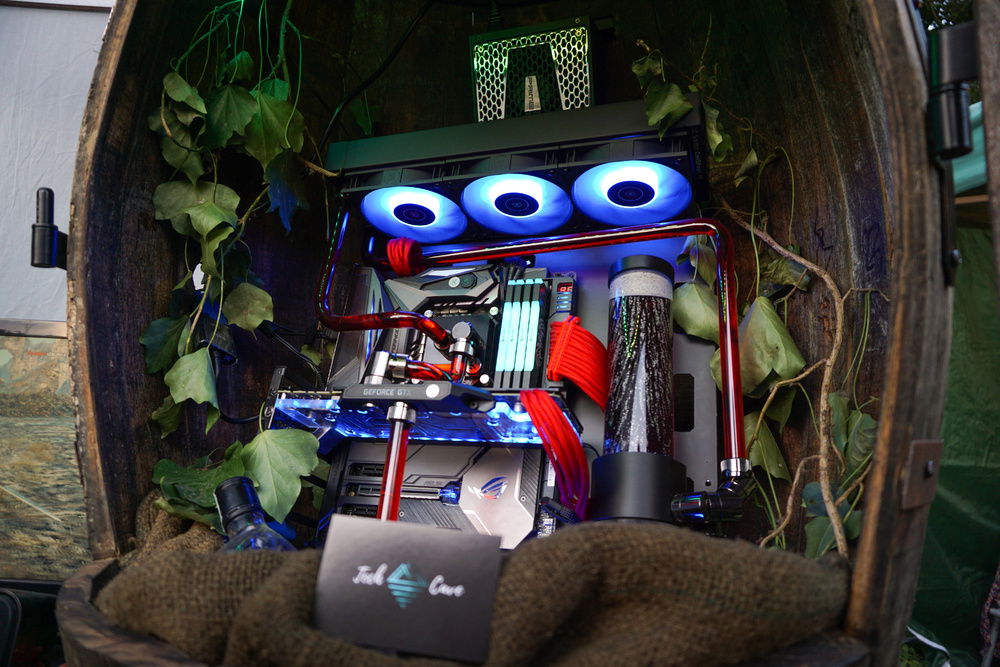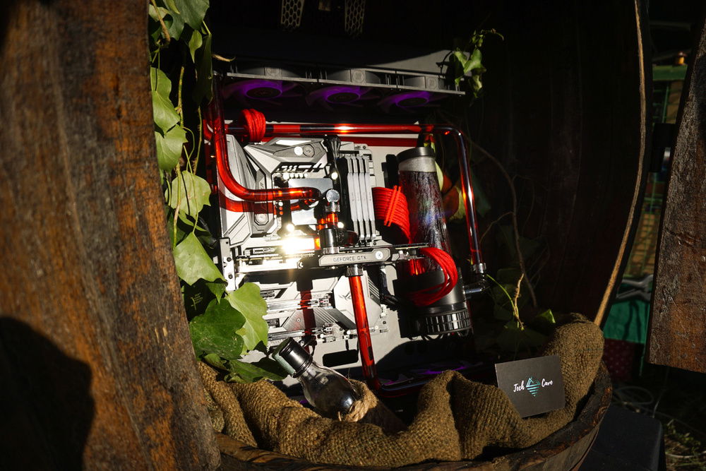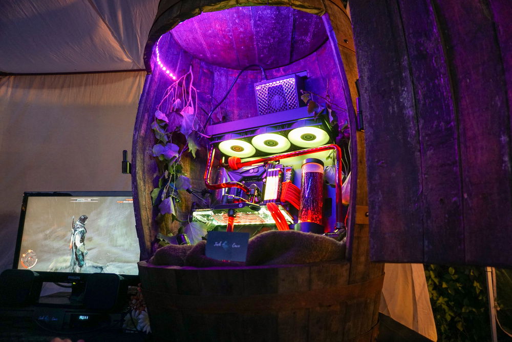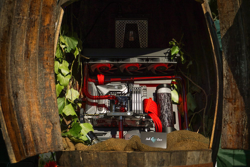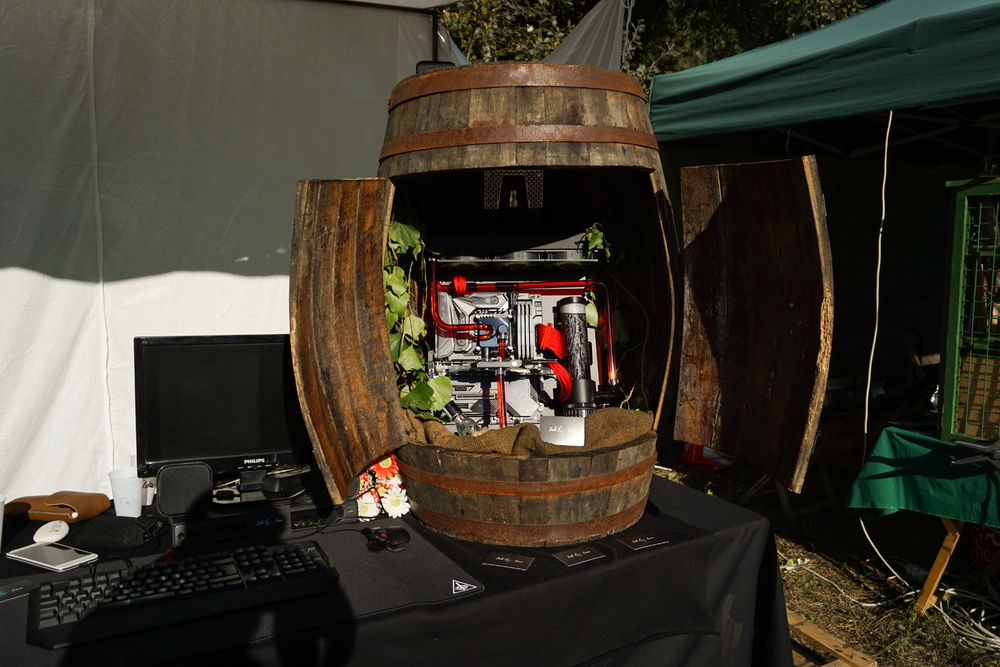 The idea was born due to the fact that here where i live in Italy, every year there's an event Lord Of The Rings themed, so i was thinking a way to bring a pc inside The Shire, and here it is! The coolant is red to simulate wine and the lids can be open and closed at will.