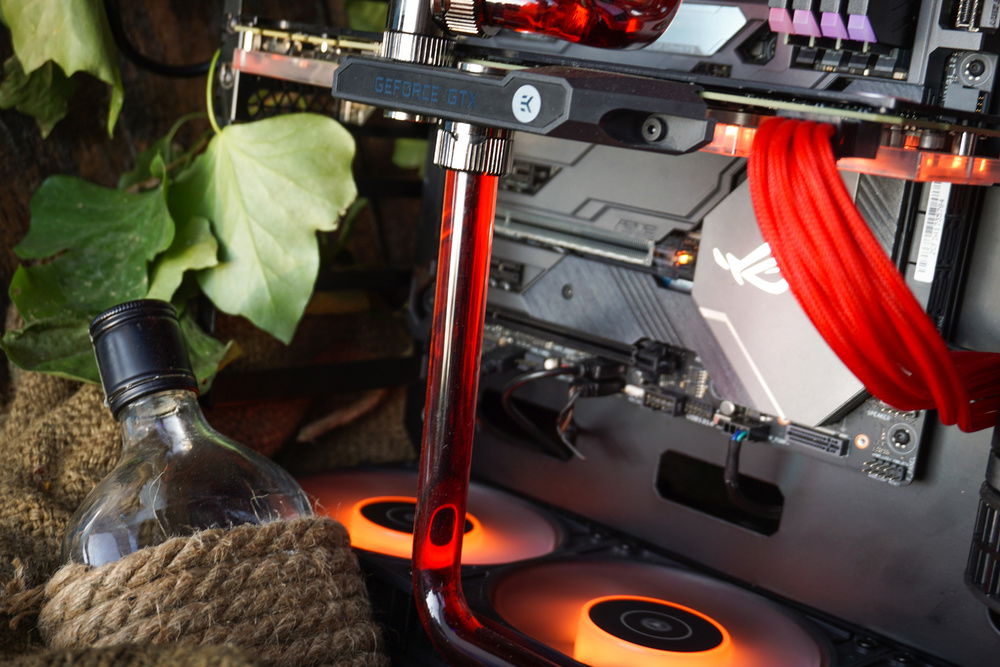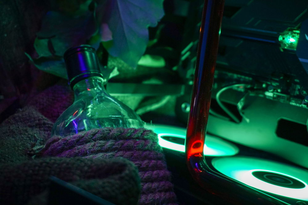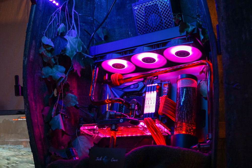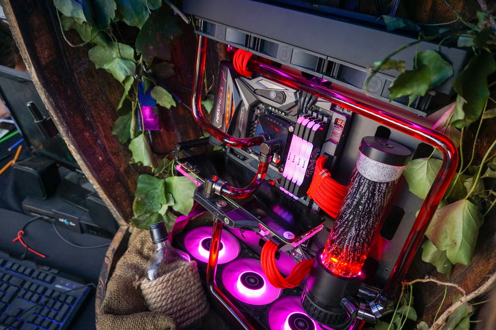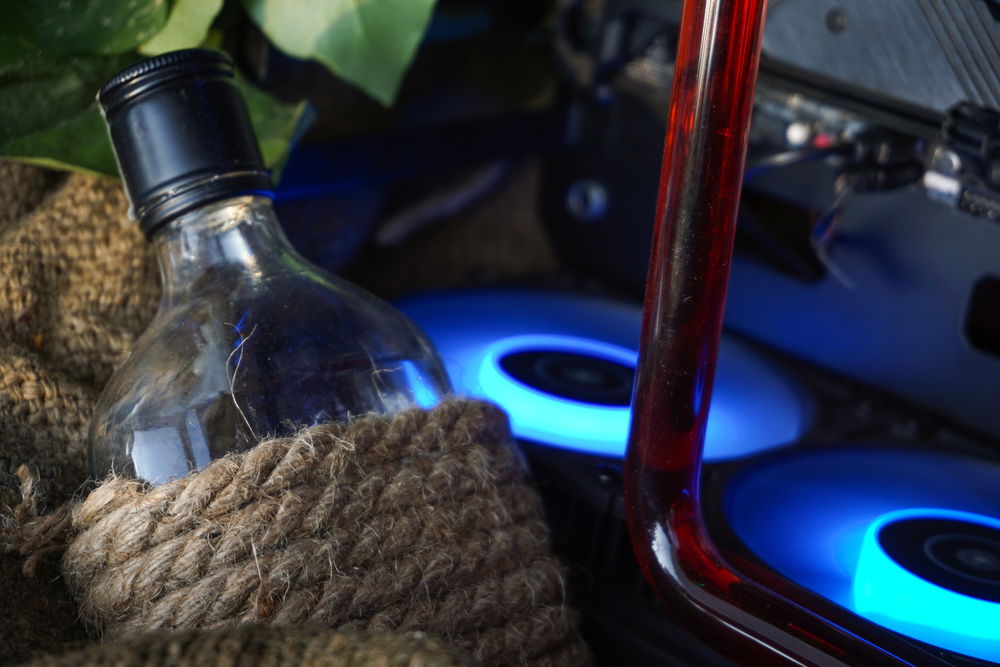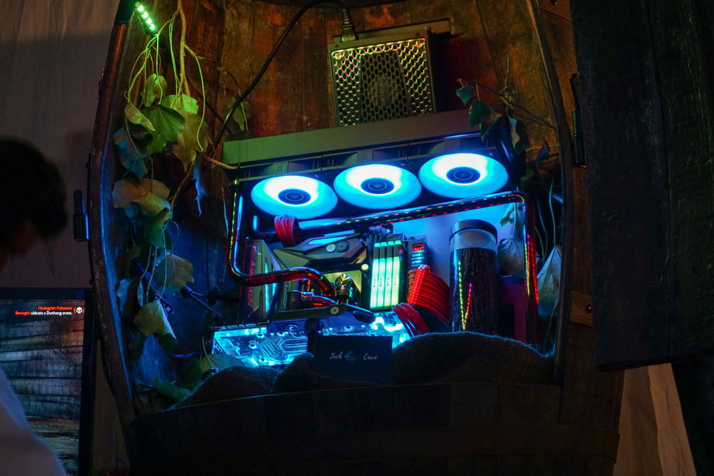 The idea was born due to the fact that here where i live in Italy, every year there's an event Lord Of The Rings themed, so i was thinking a way to bring a pc inside The Shire, and here it is! The coolant is red to simulate wine and the lids can be open and closed at will.