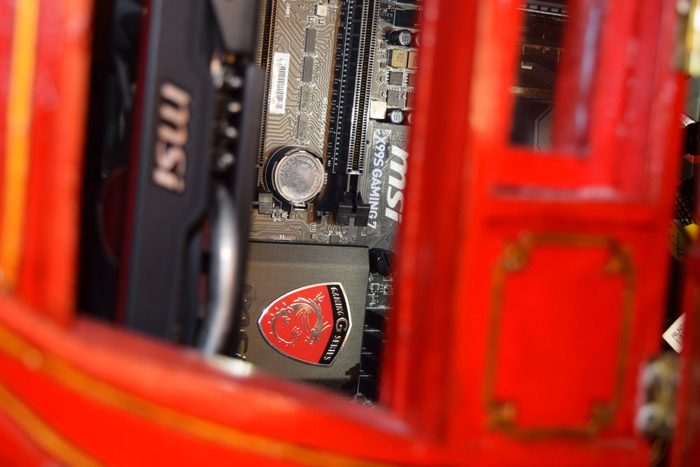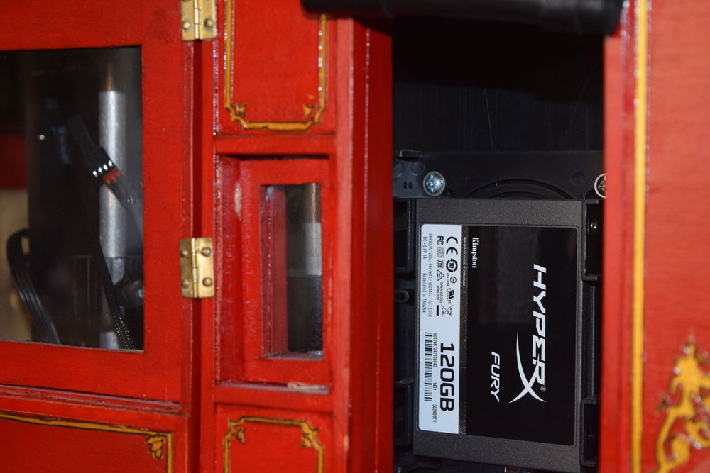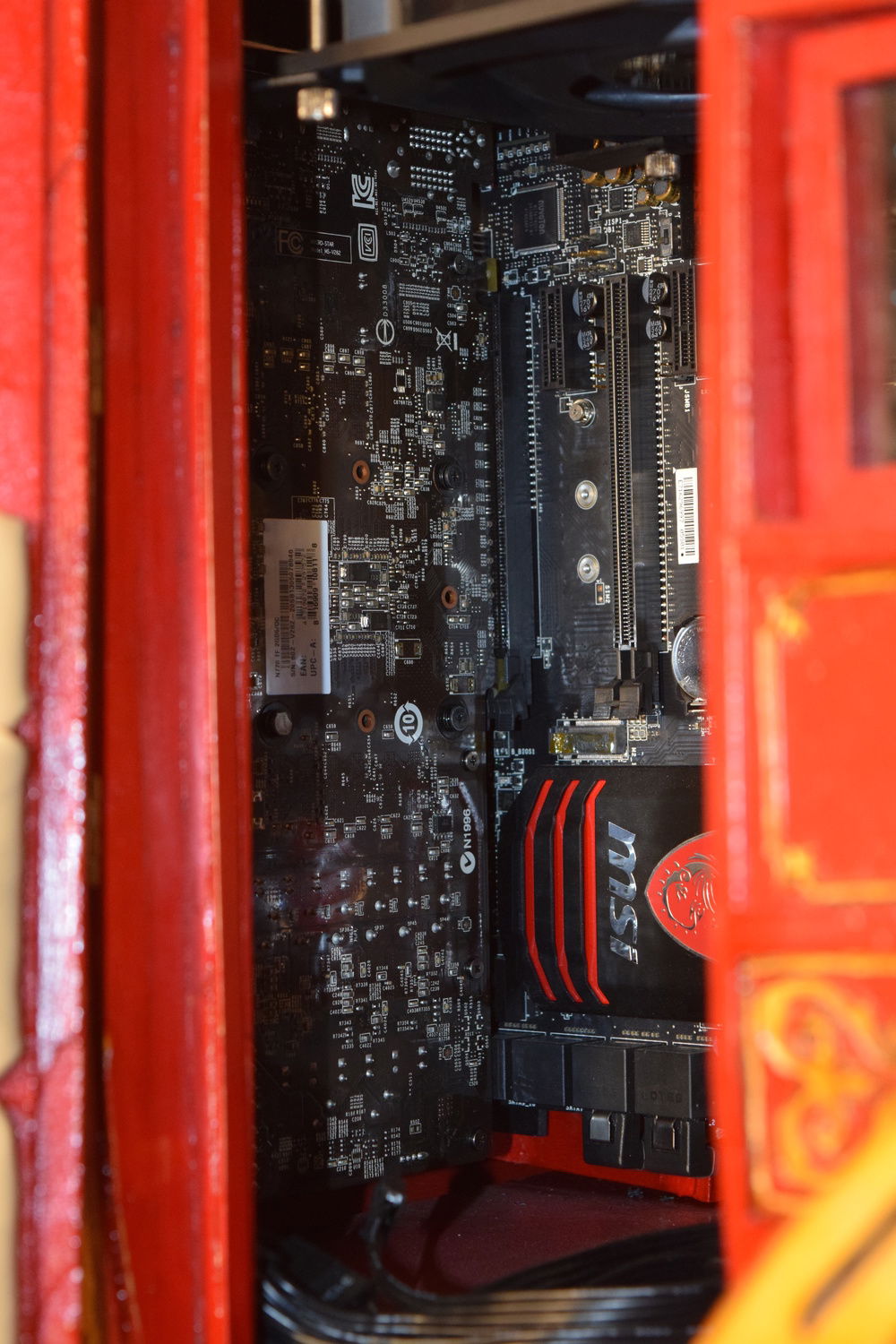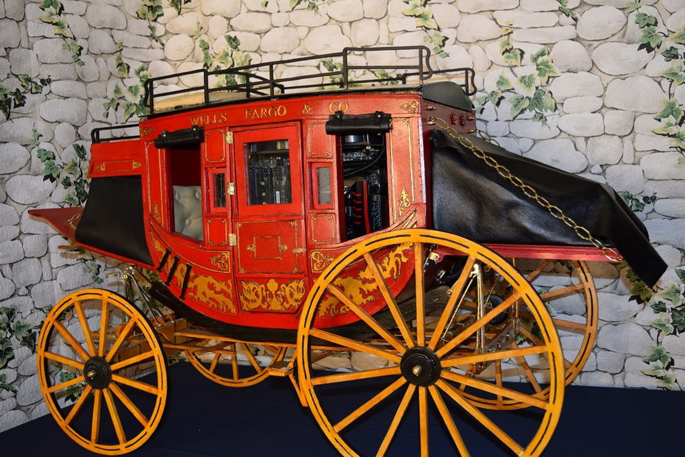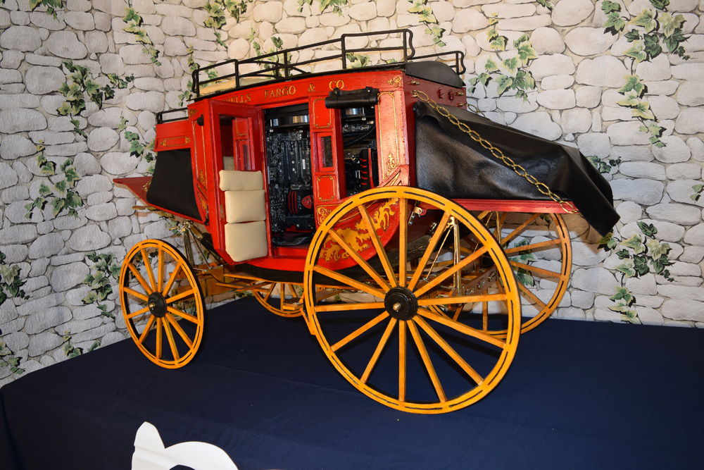 The project of “The Stage Coach” was born from the passion in designing, building and from the experience in the processing of various materials as aluminum, brass and wood. “The Stage Coach” is a real reproduction of the 1880 stage coach. For a higher strenght its frame is all aluminum with a treated wood covering. It has handmade beige leather seats and the buttons are covered with the same leather. The very important peculiarity is the roof that opens to 90° with a linear actuator powered by an electric switch. Therefore we have a larger space for maintenance. The motherboard is fixed on a black plexiglass sheet fixed on bushings positioned on two aluminum tubulars. The PSU is located in the back of the coach - the trunk – that is covered by black leather. The SSD are located behind the plexiglass sheet,. In the sides of the coach there are gold decorations. The machines used are: milling machine “Optimum” jig saw “Proxxon” welding apparatus for aluminum hand tools and a lot of dexterity.