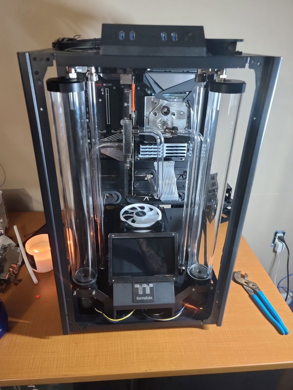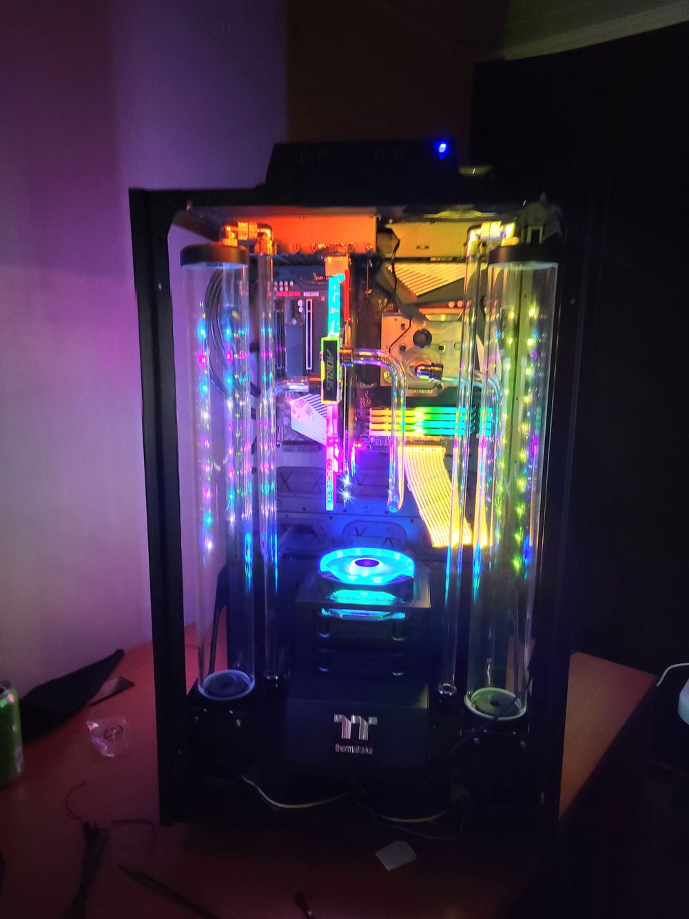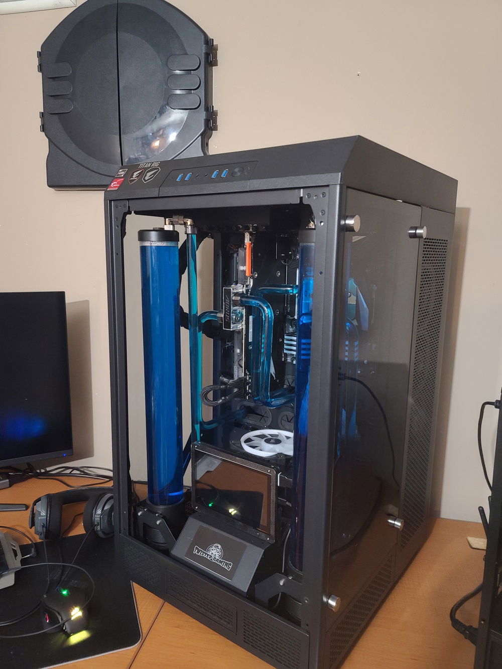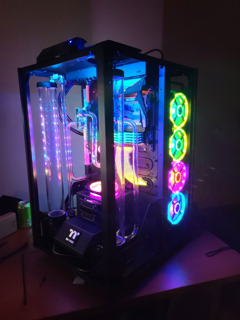 I used the tower 900 on this build. What an amazing case from Thermaltake!! The build took me about 4 weeks from when I ordered parts up until I finished. I hope you guys enjoy this build as much as I did!!! This isn't all the parts I used. The resivors I couldn't find and bunch of other stuff. Got any questions shoot me a message. Thanks for checking out my build.