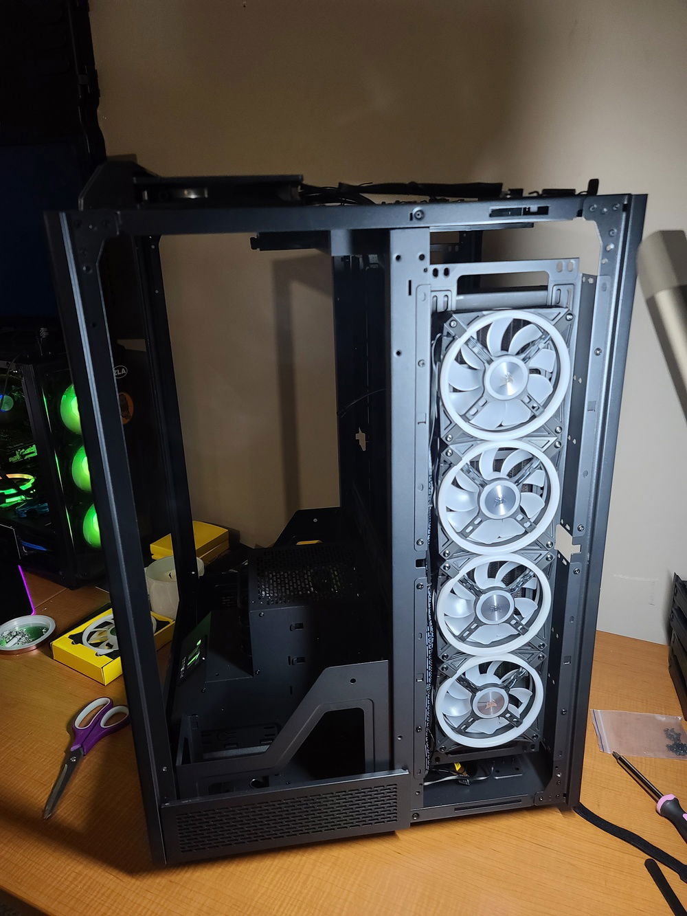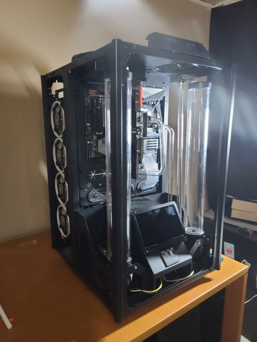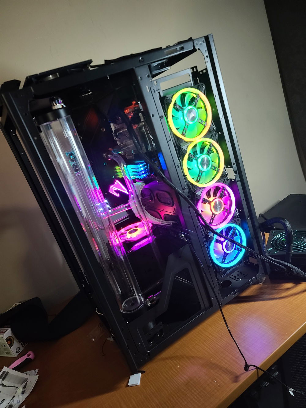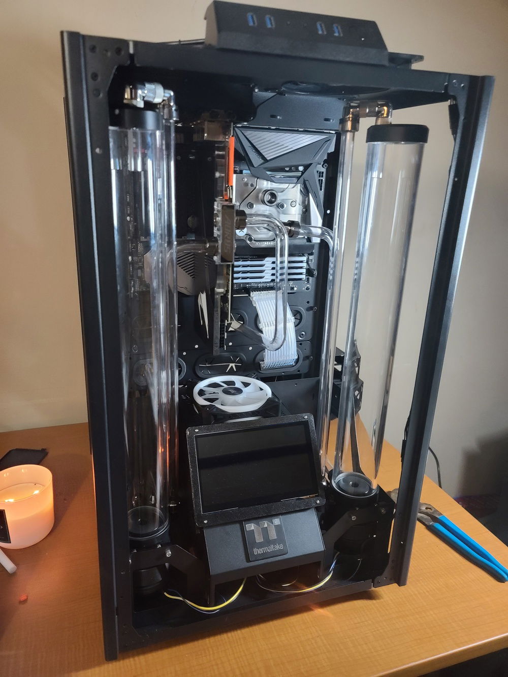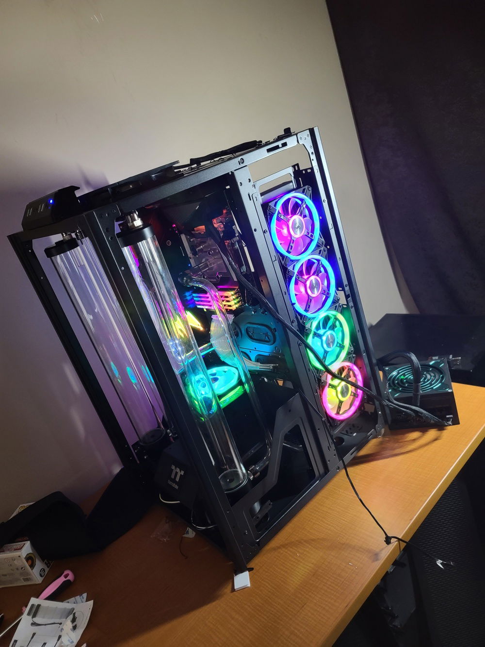 I used the tower 900 on this build. What an amazing case from Thermaltake!! The build took me about 4 weeks from when I ordered parts up until I finished. I hope you guys enjoy this build as much as I did!!! This isn't all the parts I used. The resivors I couldn't find and bunch of other stuff. Got any questions shoot me a message. Thanks for checking out my build.