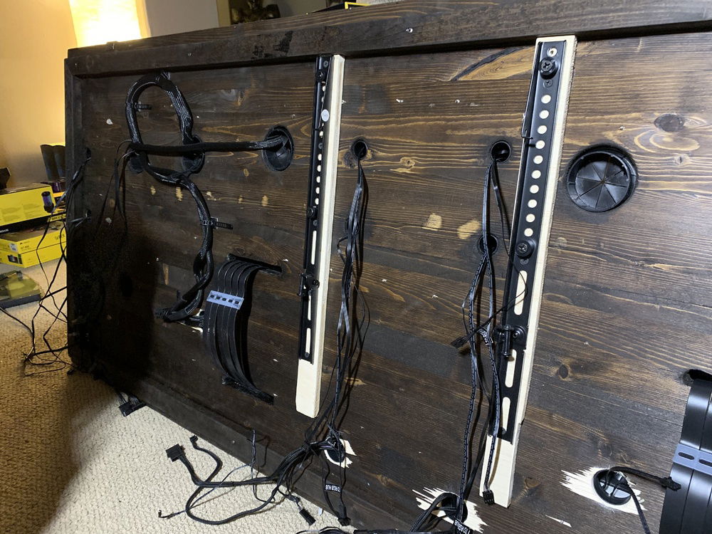 Cable management will be a major challenge on a build of this magnitude, so framing the mount is important for hiding cables, and to give some extra stability to the merged single board as an extra precaution. When we are finally done, the total build will weigh approximately 75lbs, so stability is important.