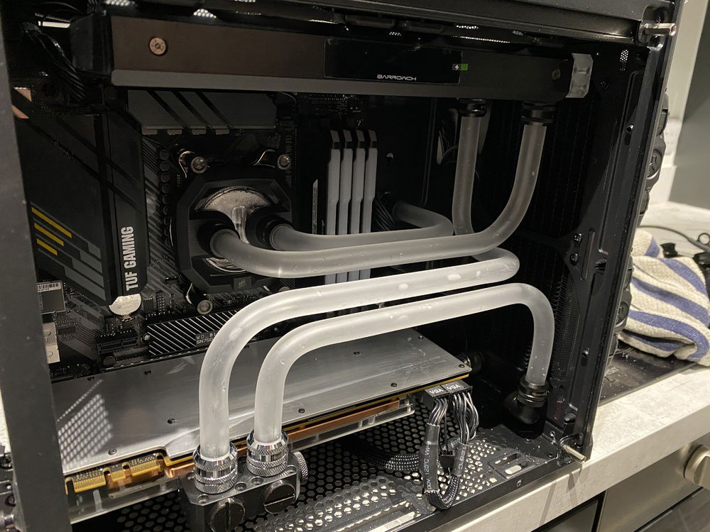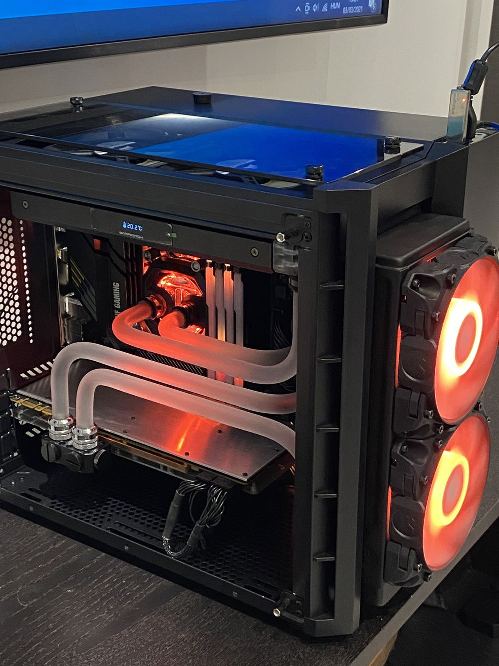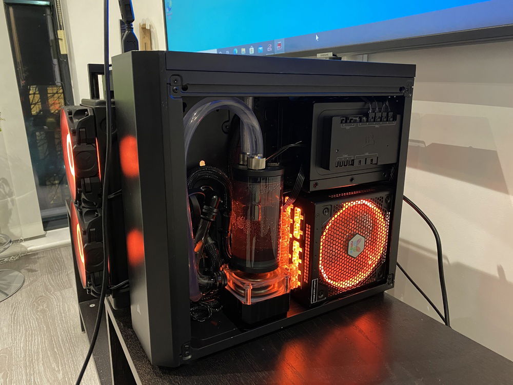 This is a semi-finished build, as ran out of budget. Ideally would have an rtx 3080 with EK waterblock, EK Vardar x3m top fans, custom cabling, interior shield made out of rustic mirror and another 210mm tube reservoir fitted on top of the case on the psu side. Still very satisfied though! Special thanks to my girlfriend for her patience during the build.