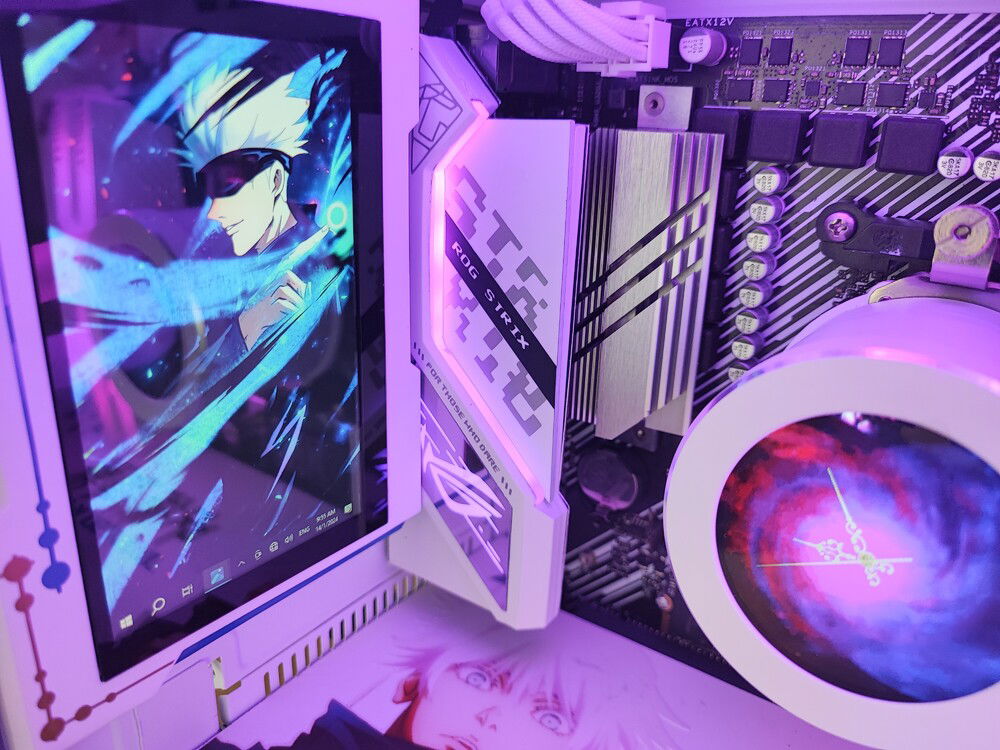 - Custom ARGB motherboard heatsink cover (reference ROG STRIX B760-G)